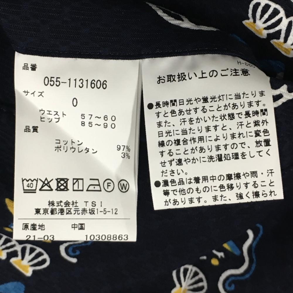 【新品】パーリーゲイツ パンツ ネイビー×白 マーメイド柄 ストレッチ レディース 0(S) ゴルフウェア PEARLY GATES