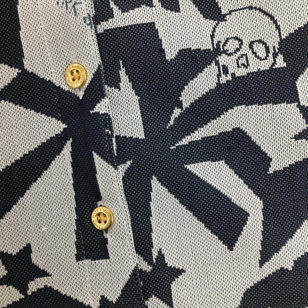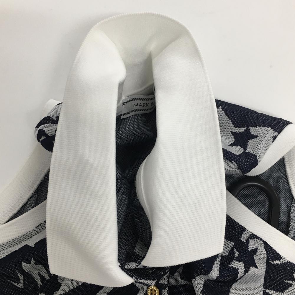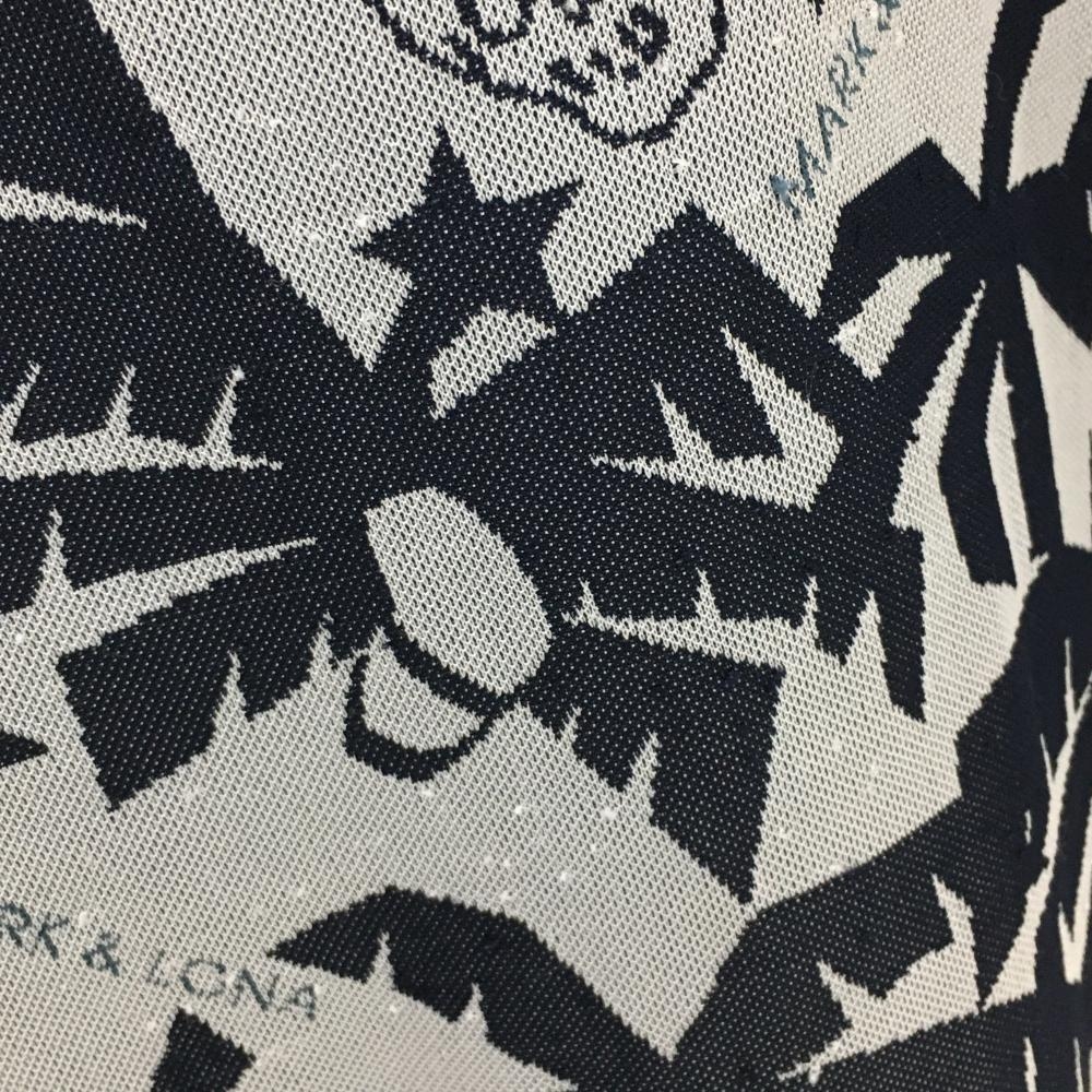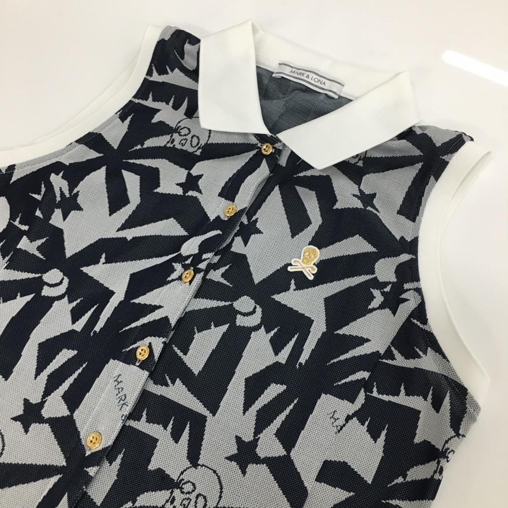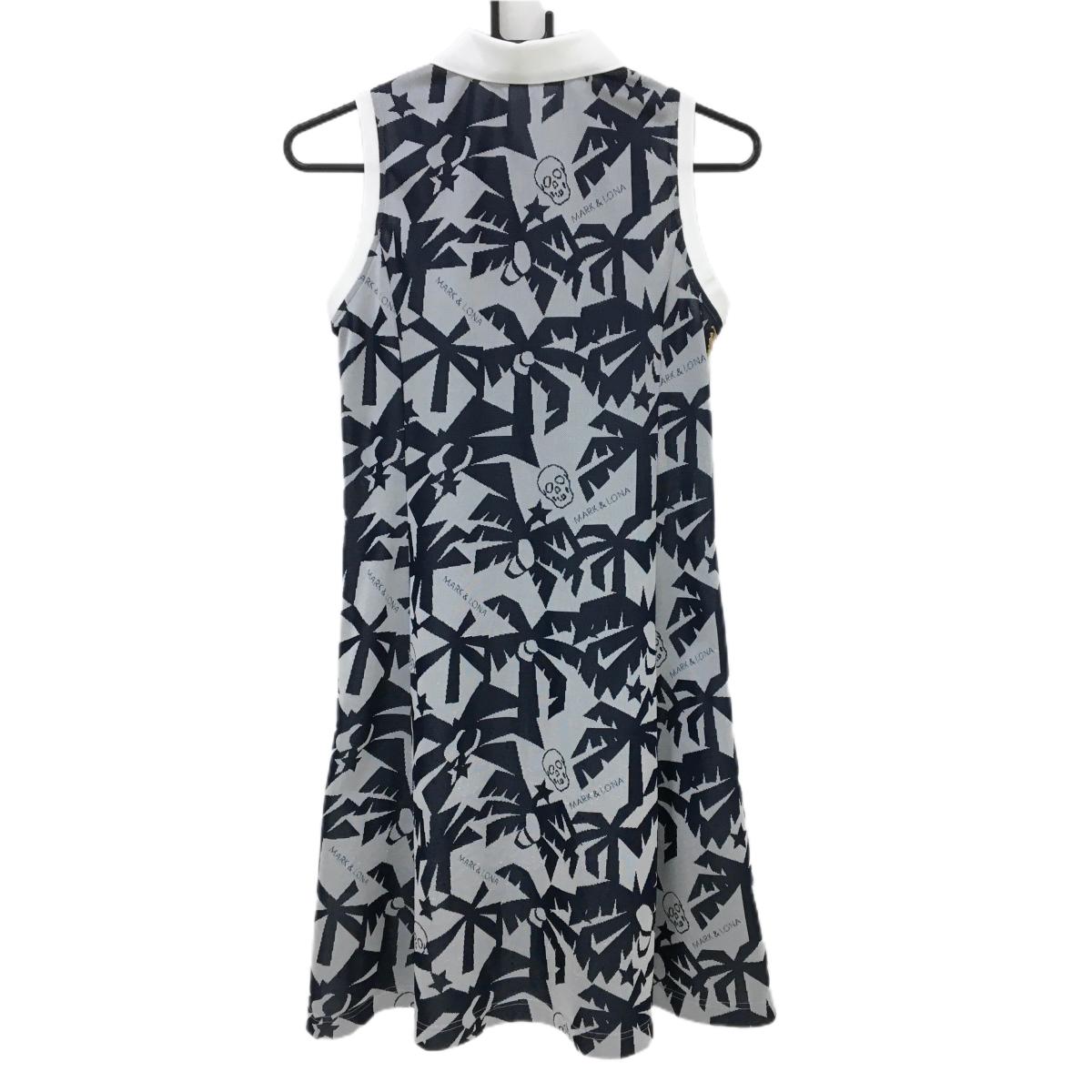 マークアンドロナ ノースリーブポロワンピース ライトグレー×ネイビー 総柄 ヤシの木 スカル レディース M ゴルフウェア MARK&LONA