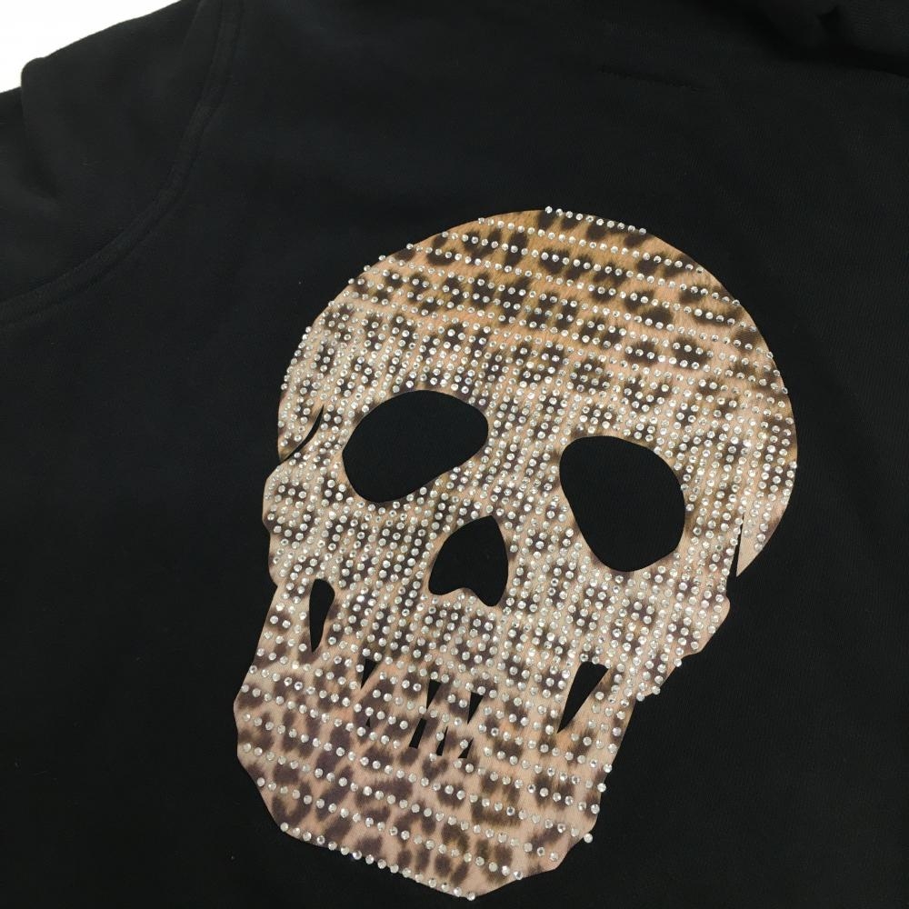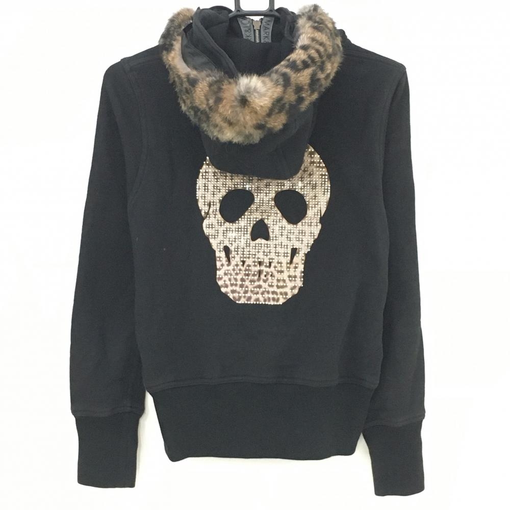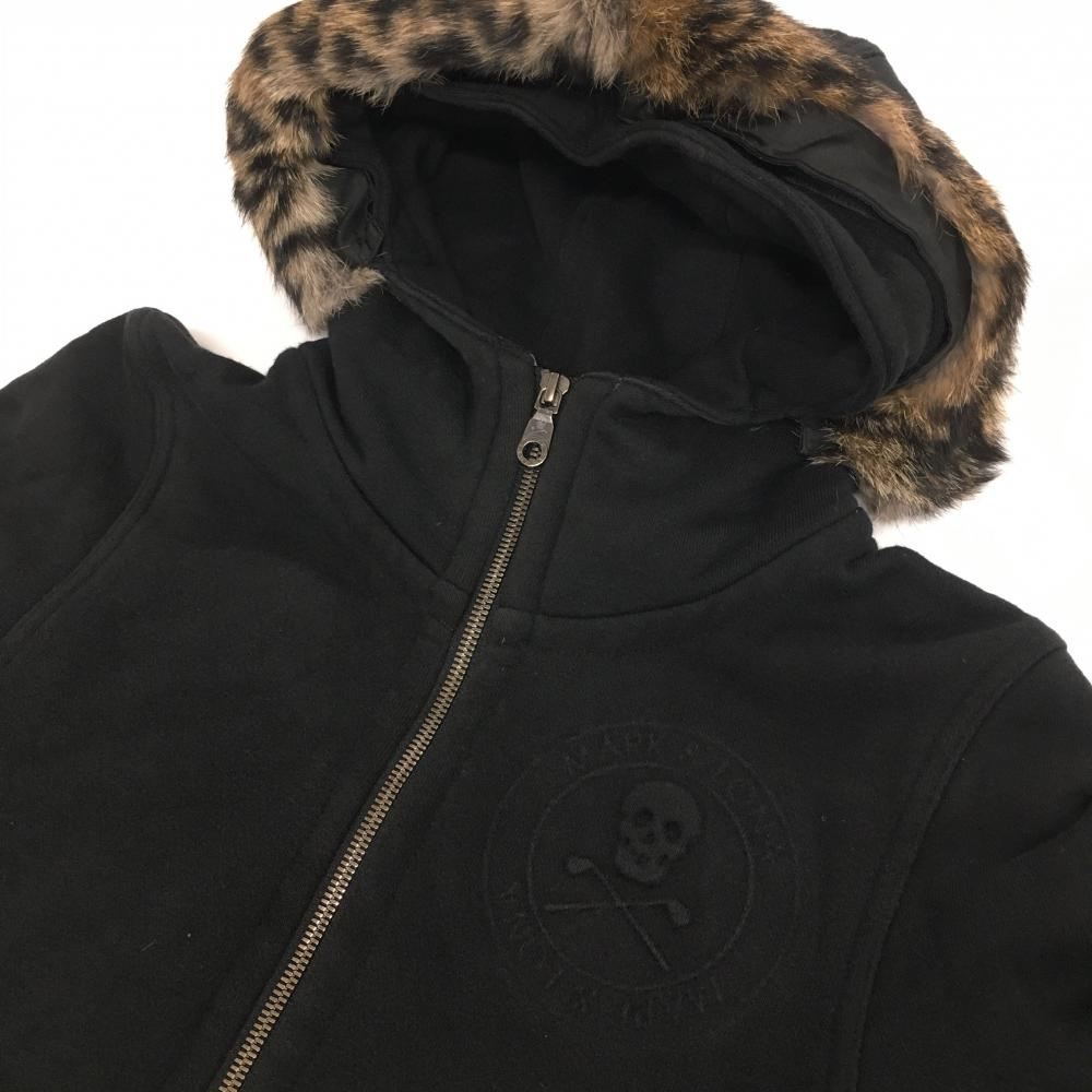 マークアンドロナ ジップパーカー 黒×ブラウン系 後ろビッグスカル ラインストーン レディース M ゴルフウェア MARK&LONA