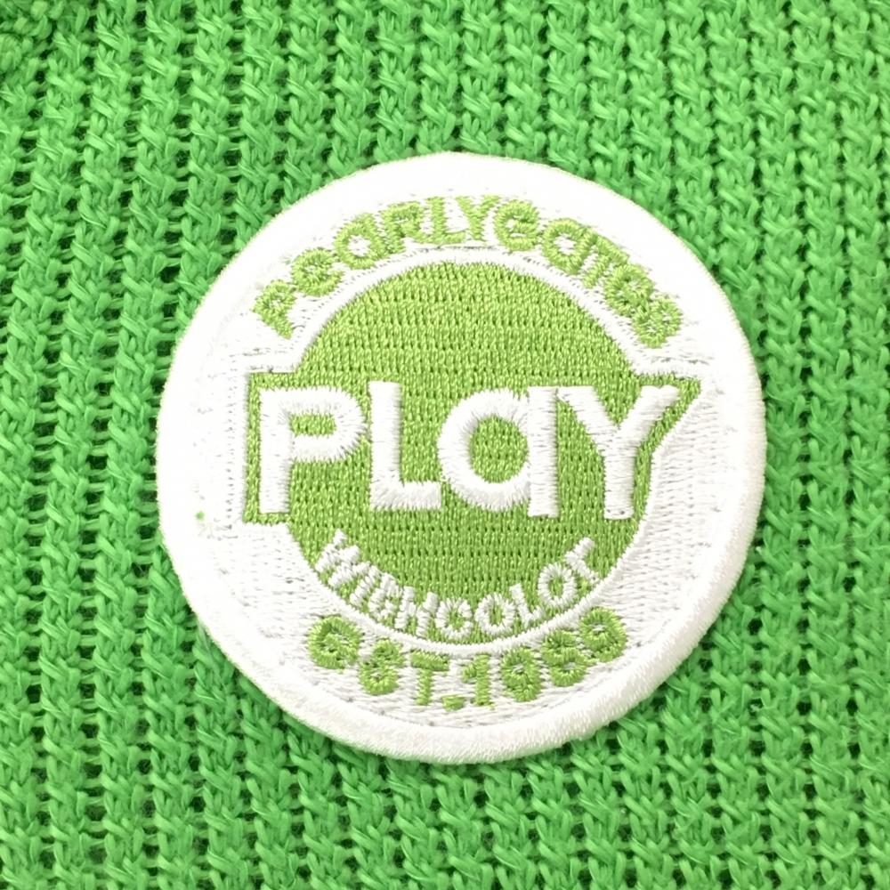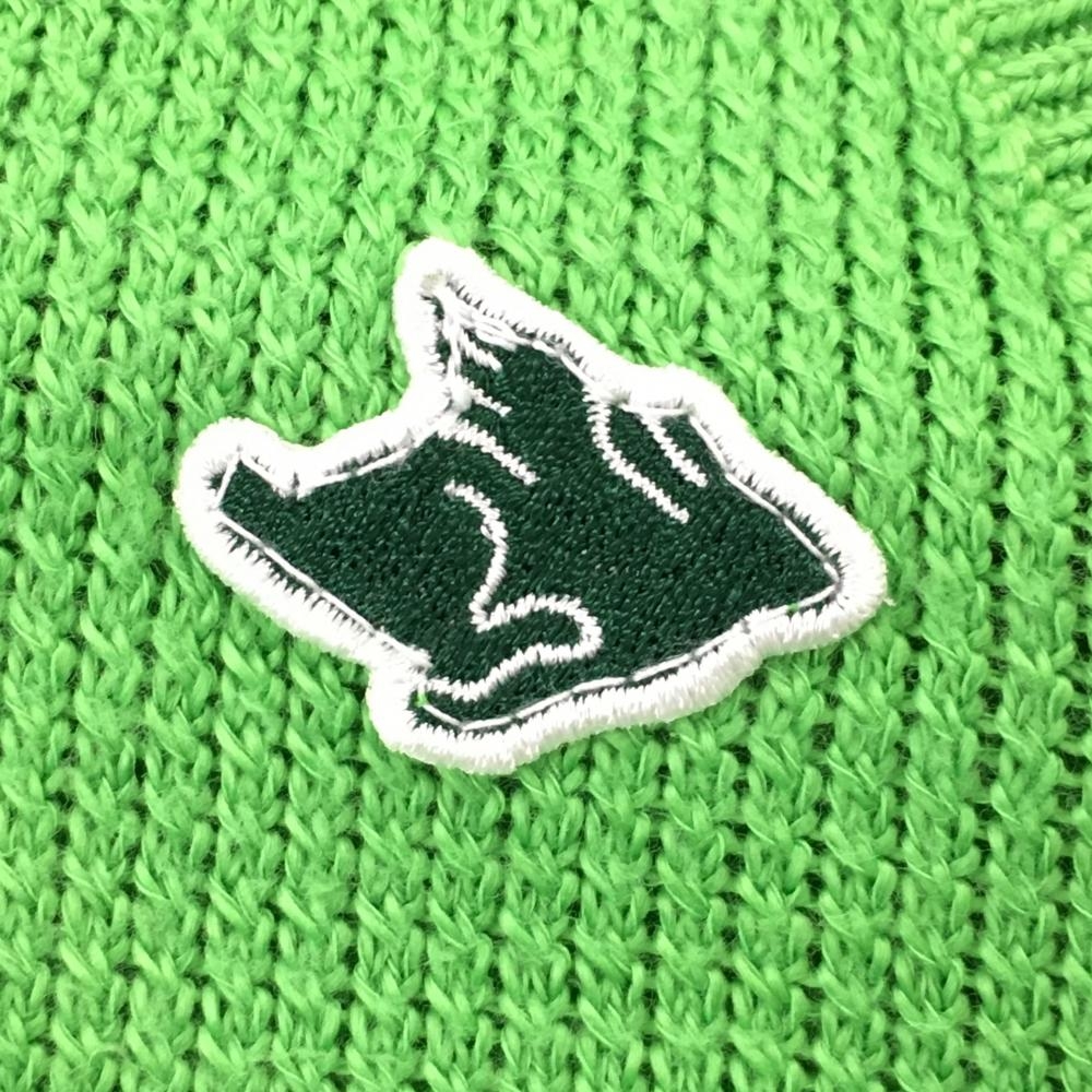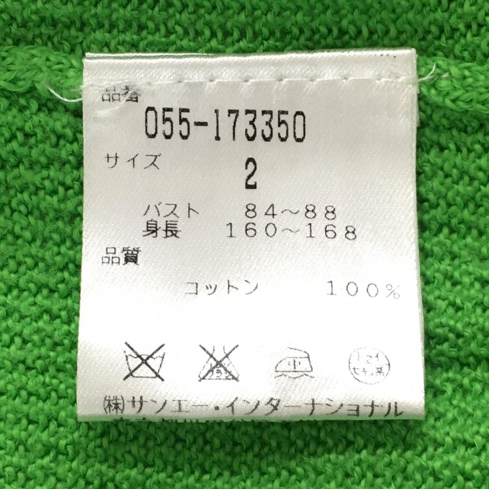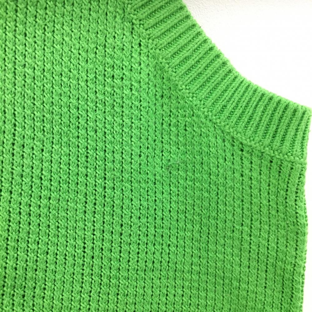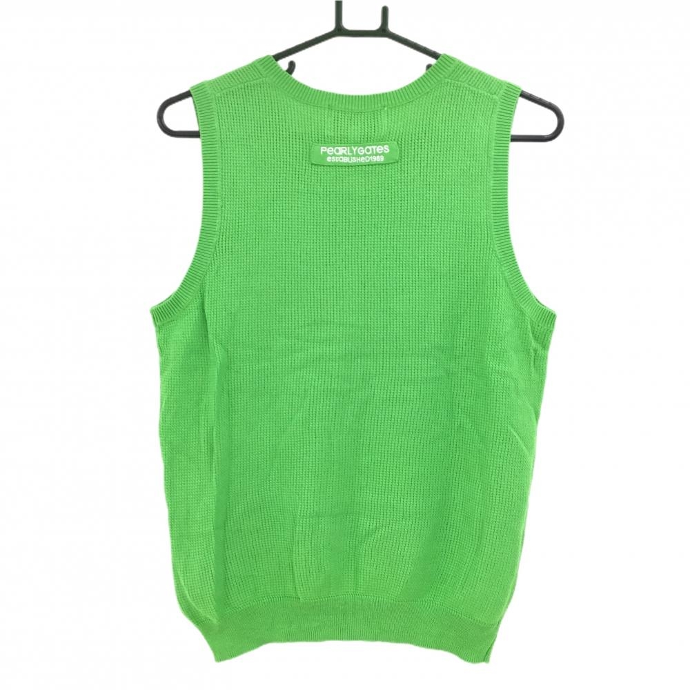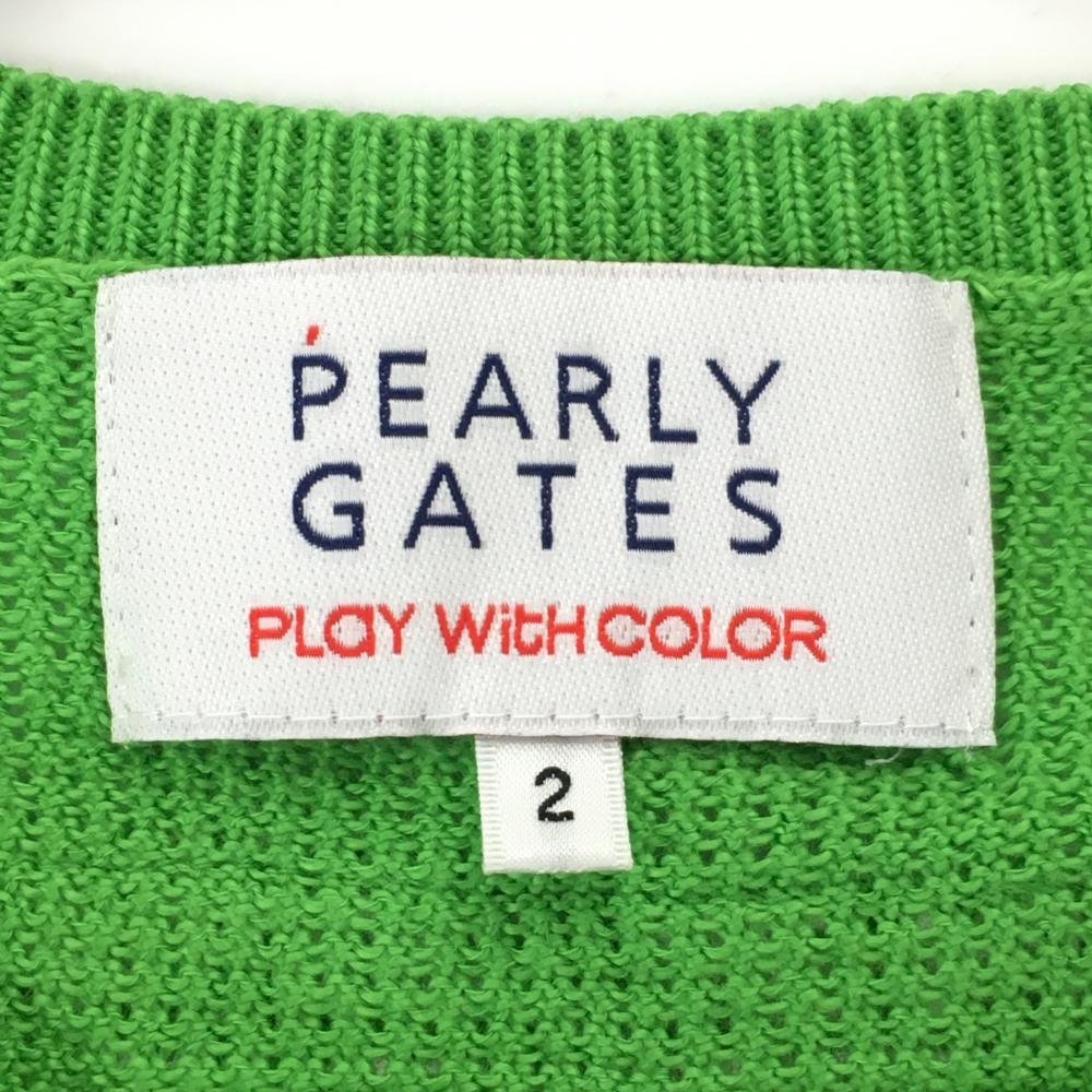 【美品】パーリーゲイツ ニットベスト ライトグリーン コットン100% Vネック レディース 2(L) ゴルフウェア PEARLY GATES