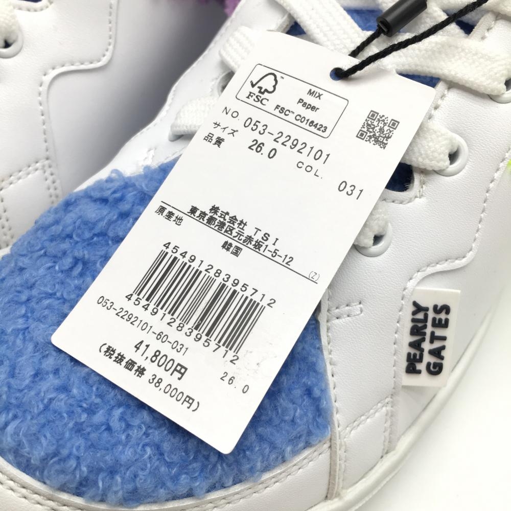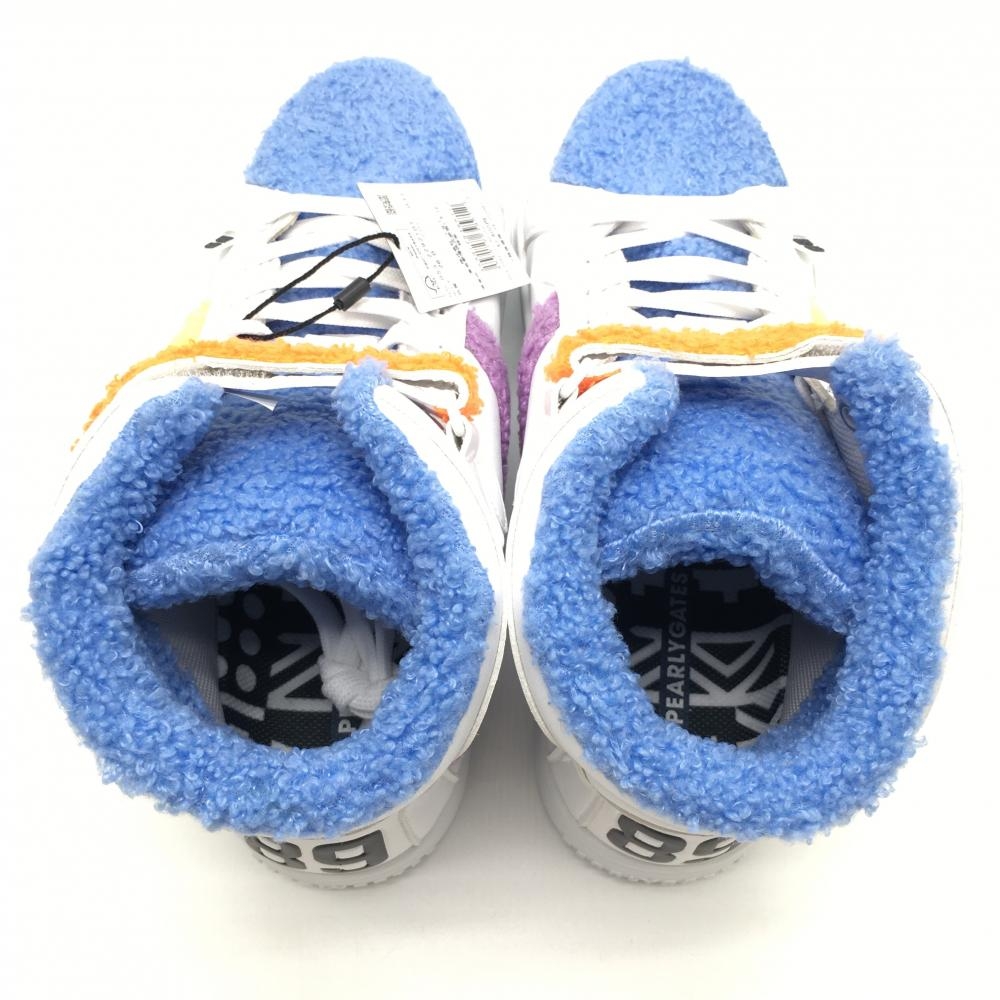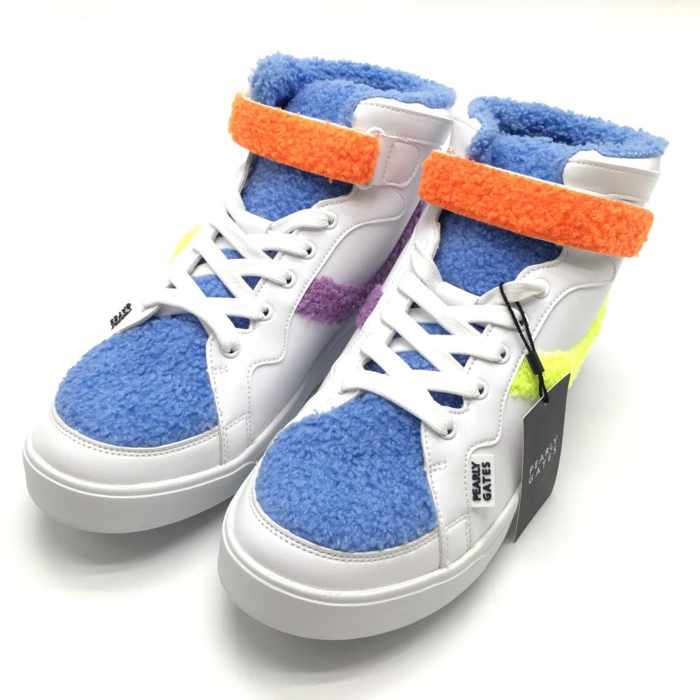 【新品】パーリーゲイツ ミドルカットゴルフシューズ 白×ライトブルー 053-2292101 カラフルボア メンズ 26.0 ゴルフウェア PEARLY GATES