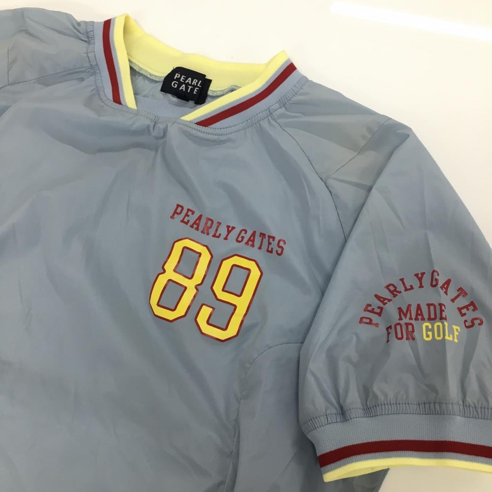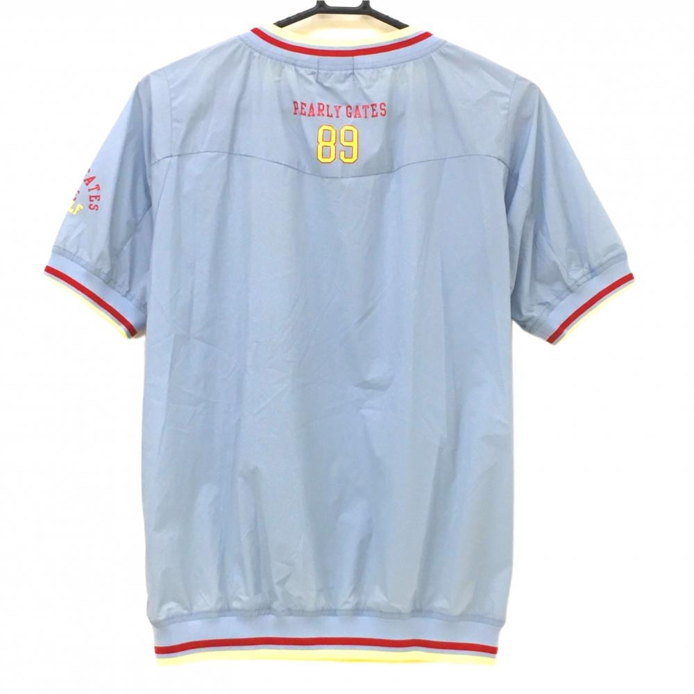 パーリーゲイツ 半袖ナイロンスニード ライトブルー×レッド×イエロー 薄手 ブルゾン レディース 2(L) ゴルフウェア PEARLY GATES