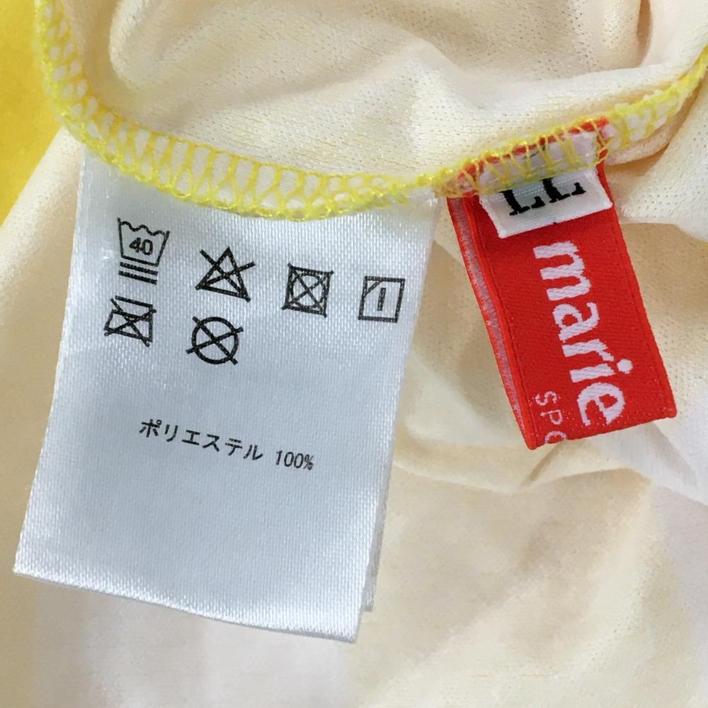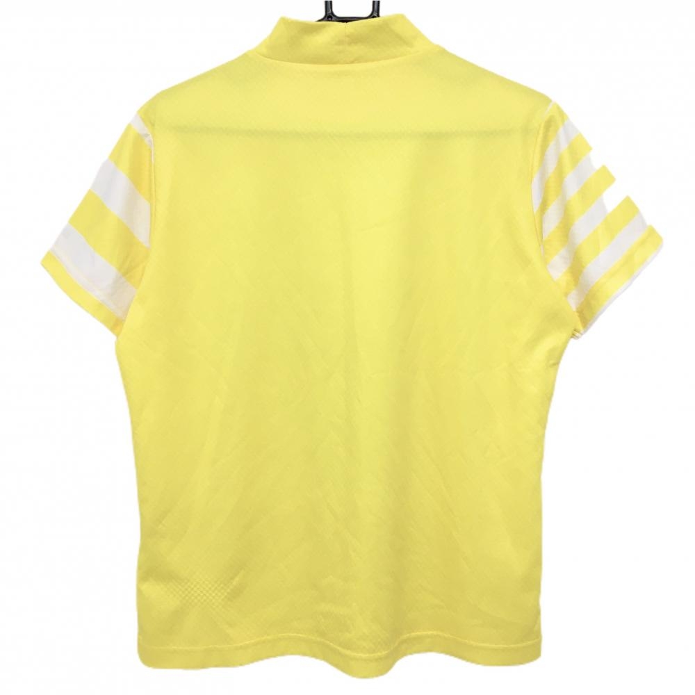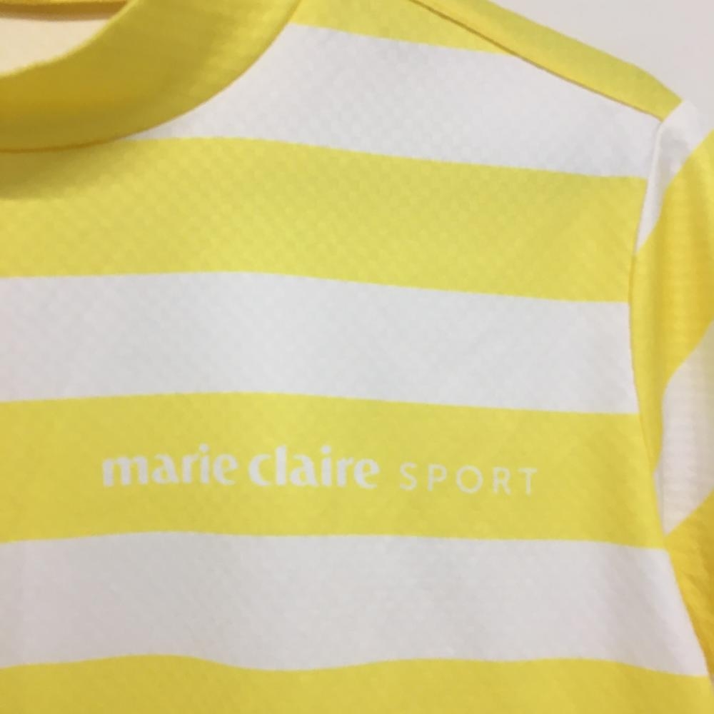 【超美品】マリクレールスポーツ 半袖ハイネックシャツ イエロー×白 ボーダー スクエア地模様 レディース LL ゴルフウェア marie claire