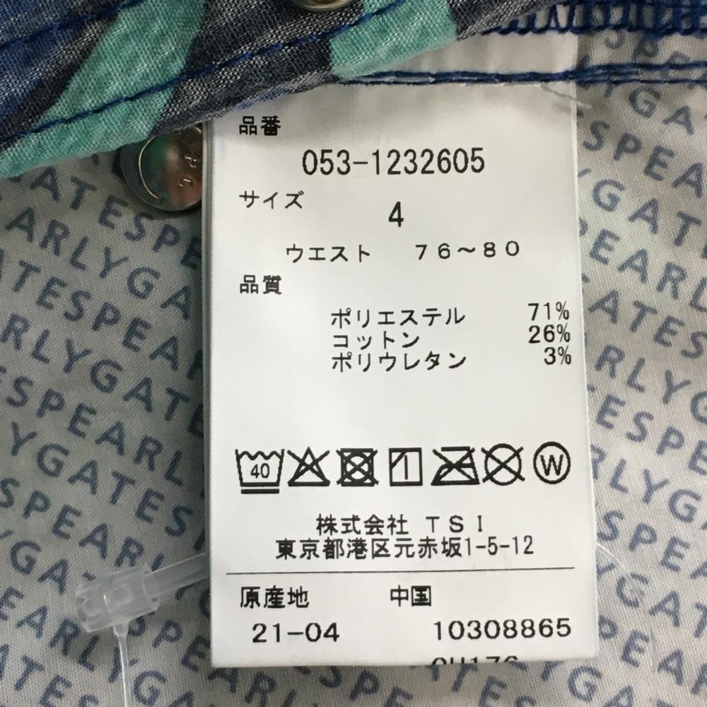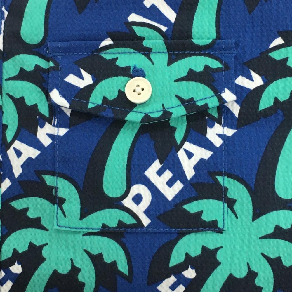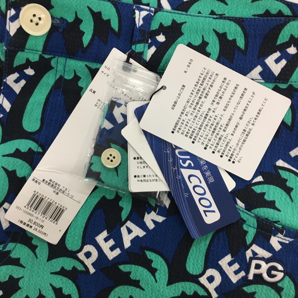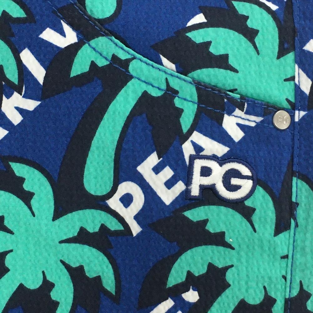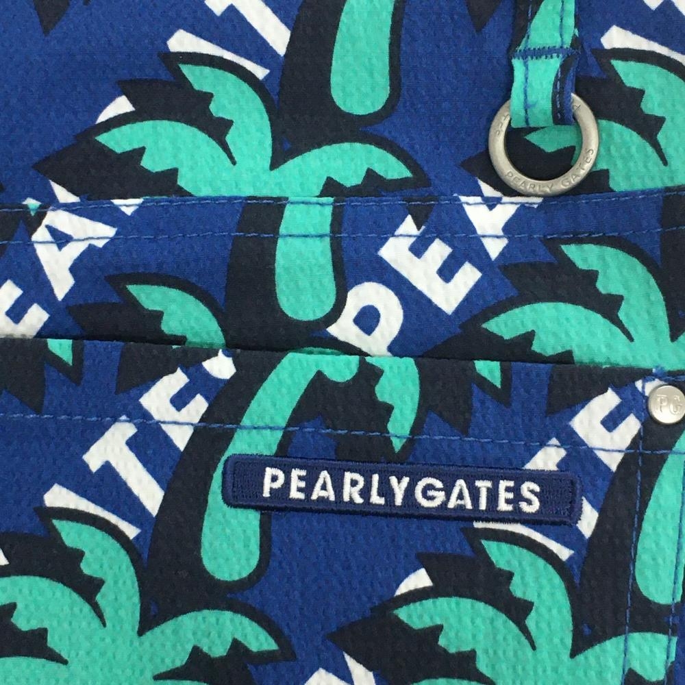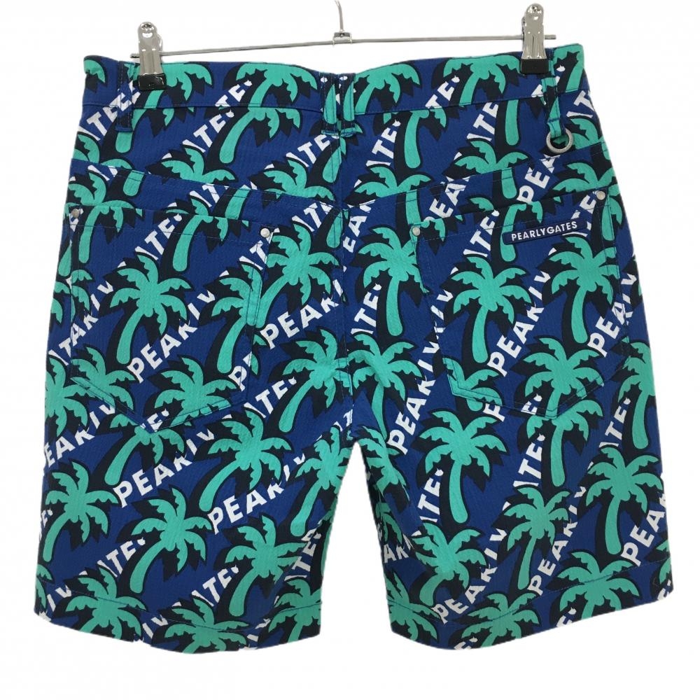 【新品】パーリーゲイツ ハーフパンツ ブルー×グリーン ヤシの木柄 サッカー生地 プラスクール メンズ 4(M) ゴルフウェア PEARLY GATES