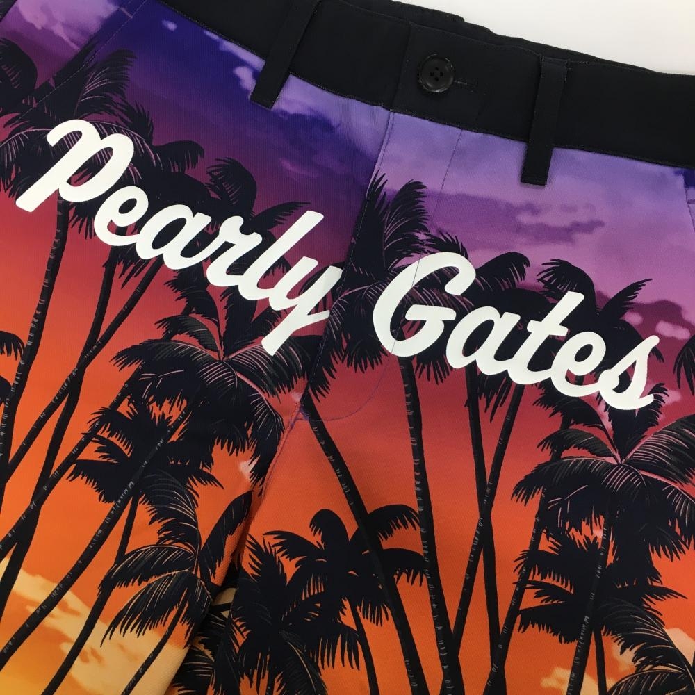 【新品】パーリーゲイツ ハーフパンツ オレンジ×ダークネイビー ヤシの木 ロゴ メンズ 4(M) ゴルフウェア PEARLY GATES