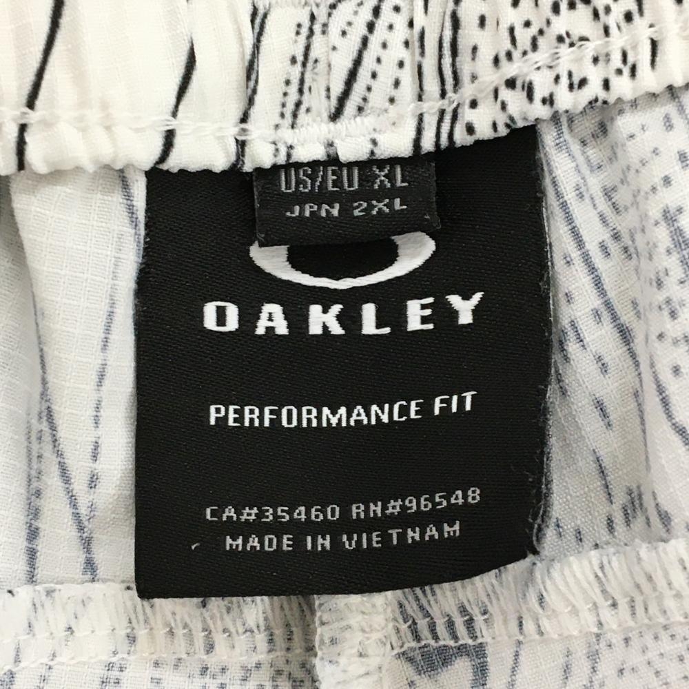 【超美品】オークリー ハーフパンツ 白×黒 総柄 ウエストゴム メンズ XL ゴルフウェア Oakley