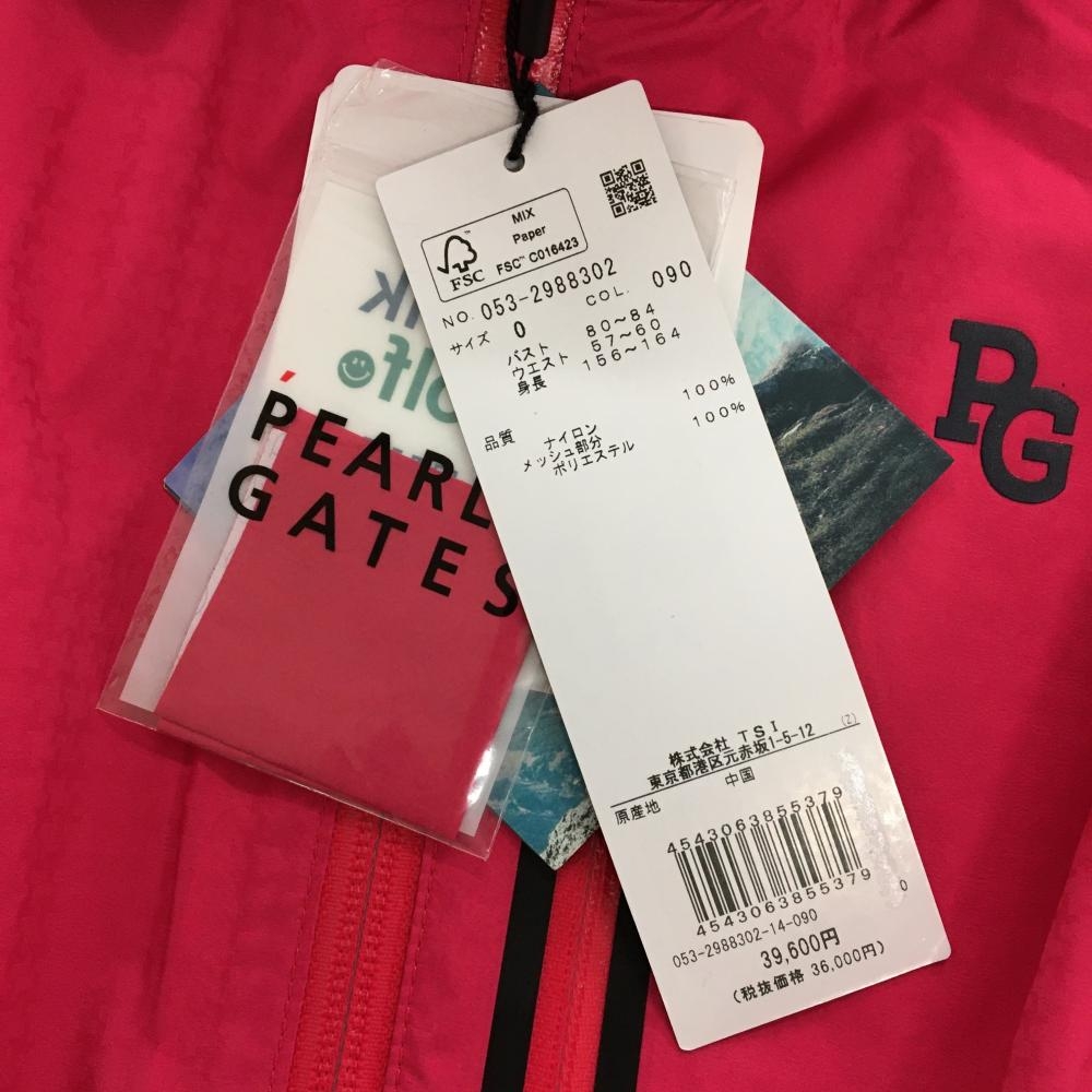 【新品】パーリーゲイツ 4WAYレインジャケット ピンク×黒 地模様 フード収納 袖着脱可 収納袋 レディース 0(S) ゴルフウェア PEARLY GATES