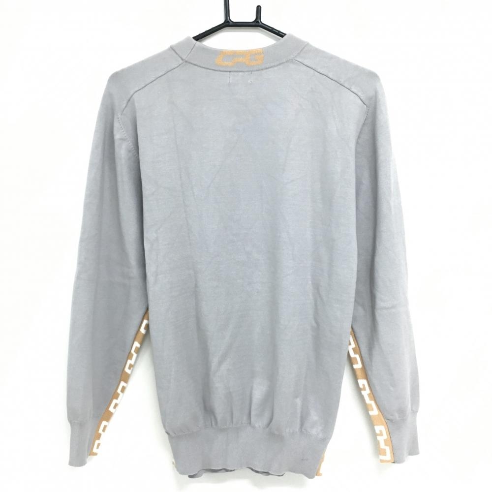 【超美品】CPG セーター ライトグレー×ベージュ 立体ロゴ刺しゅう サイド・袖下ロゴ ニット メンズ 2(M) ゴルフウェア CPG