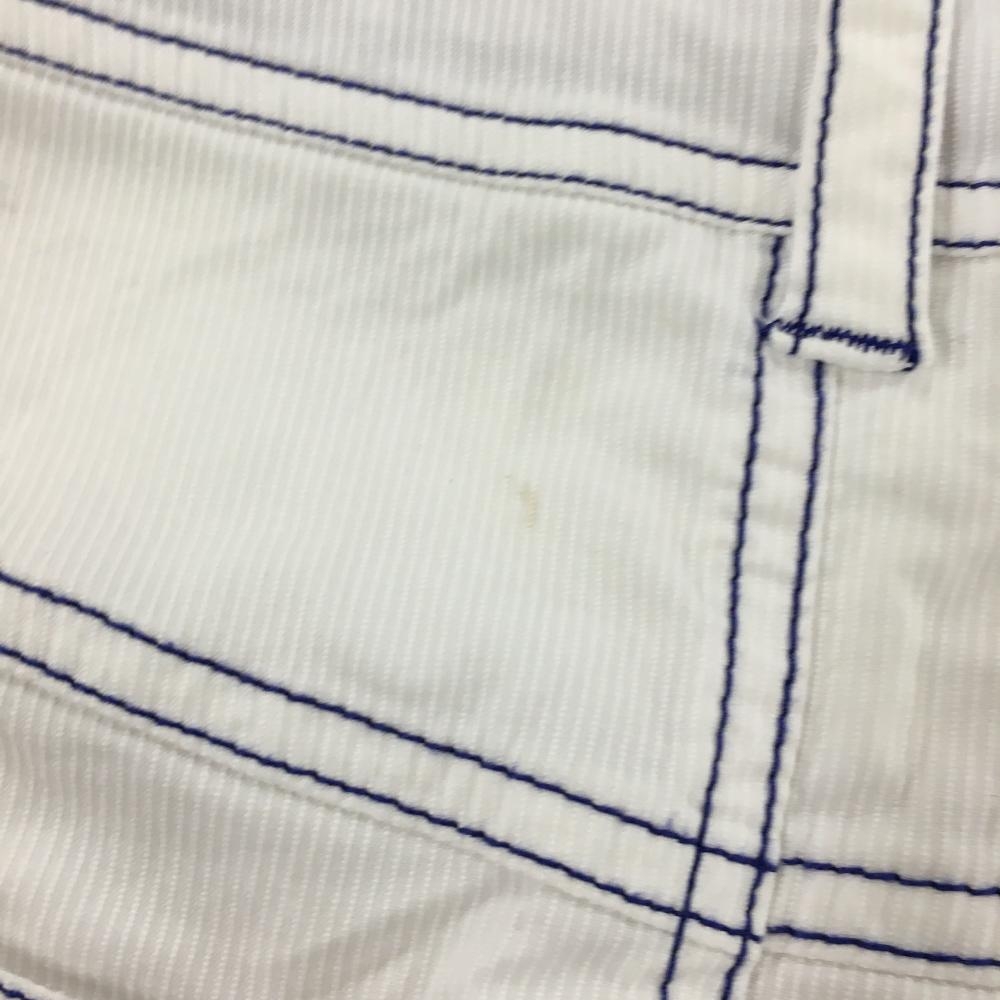 【美品】ルコックゴルフ スカート 白 ステッチブルー ストライプ地模様 レディース 9 ゴルフウェア le coq sportif