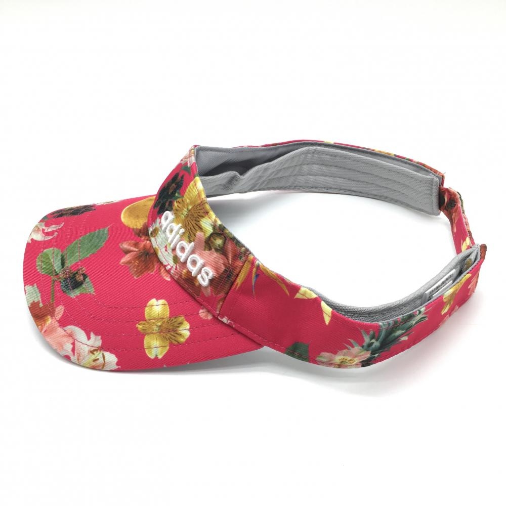 【超美品】アディダス サンバイザー ピンク×マルチカラー 花柄 フリー(56-58cm) ゴルフウェア adidas