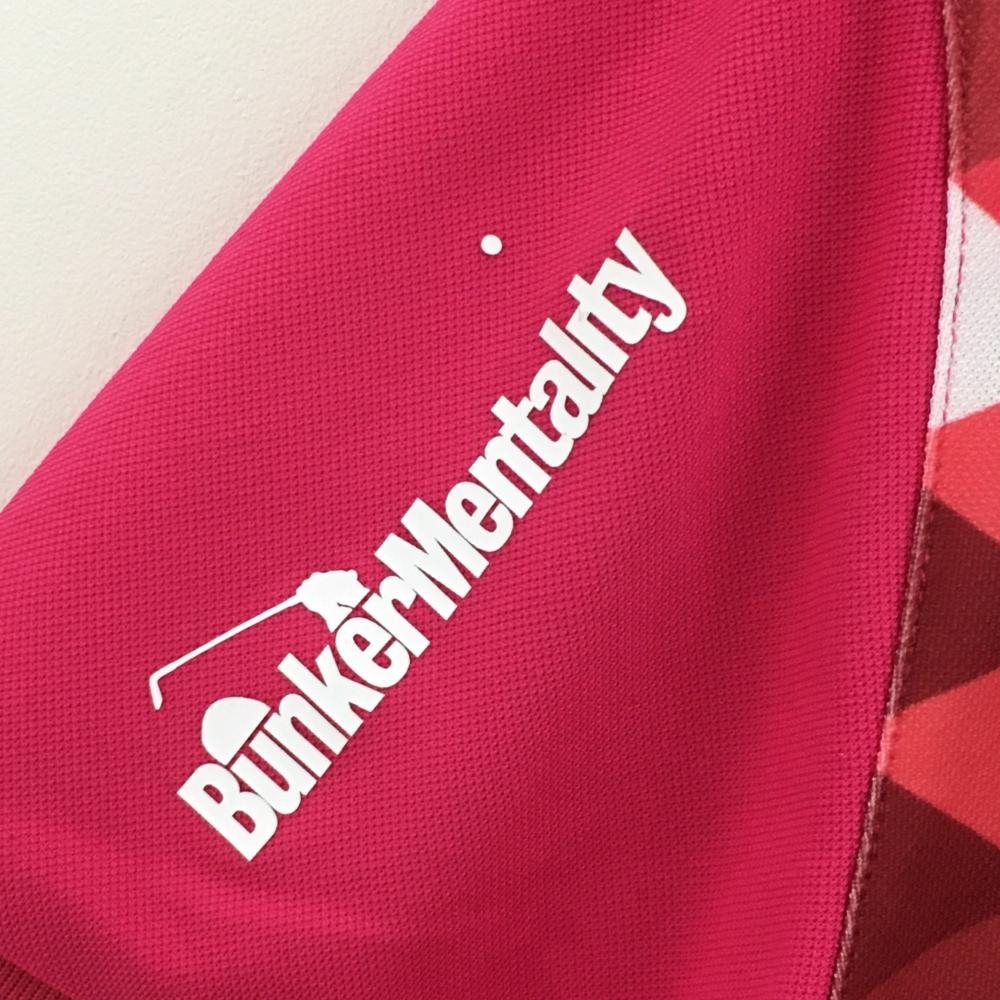 【美品】バンカーメンタリティ 半袖ポロシャツ 白×ピンク メンズ M ゴルフウェア Bunker Mentality