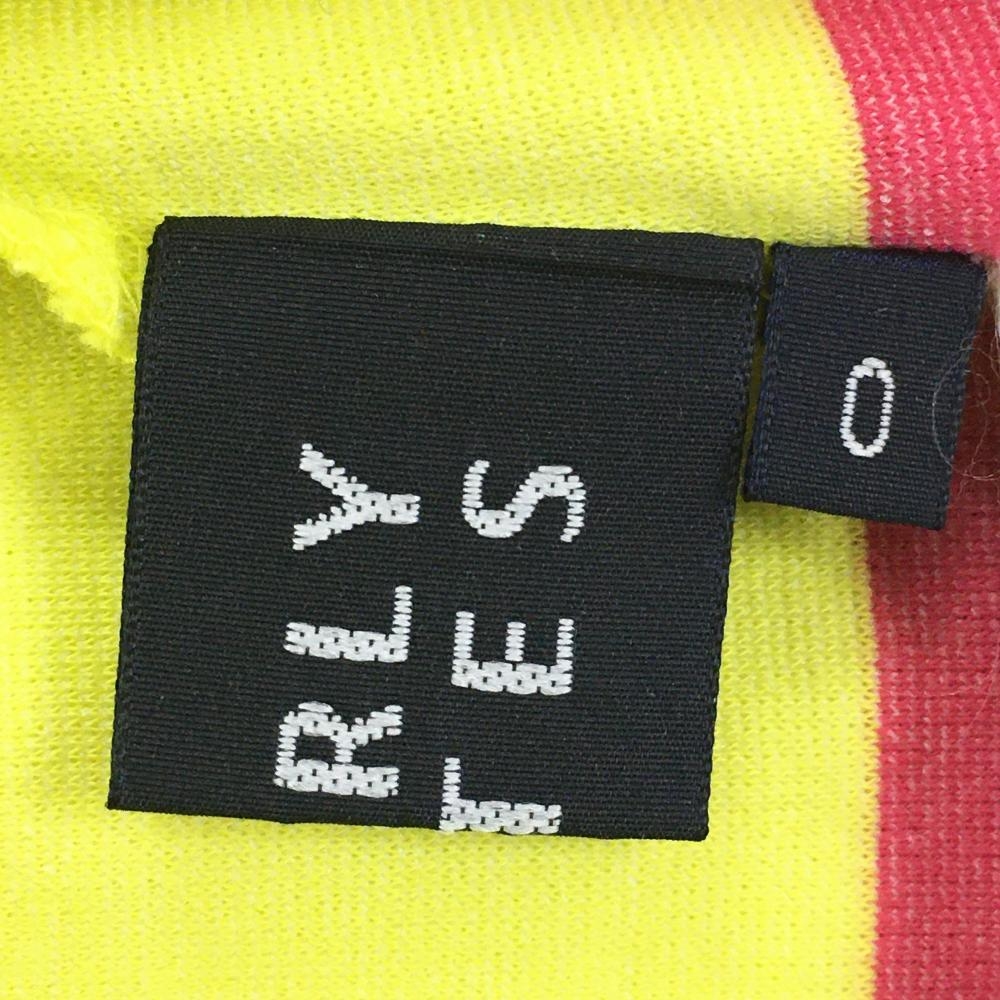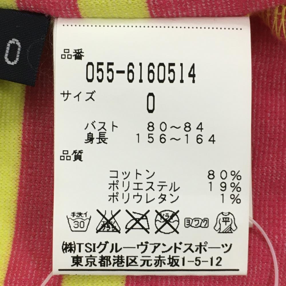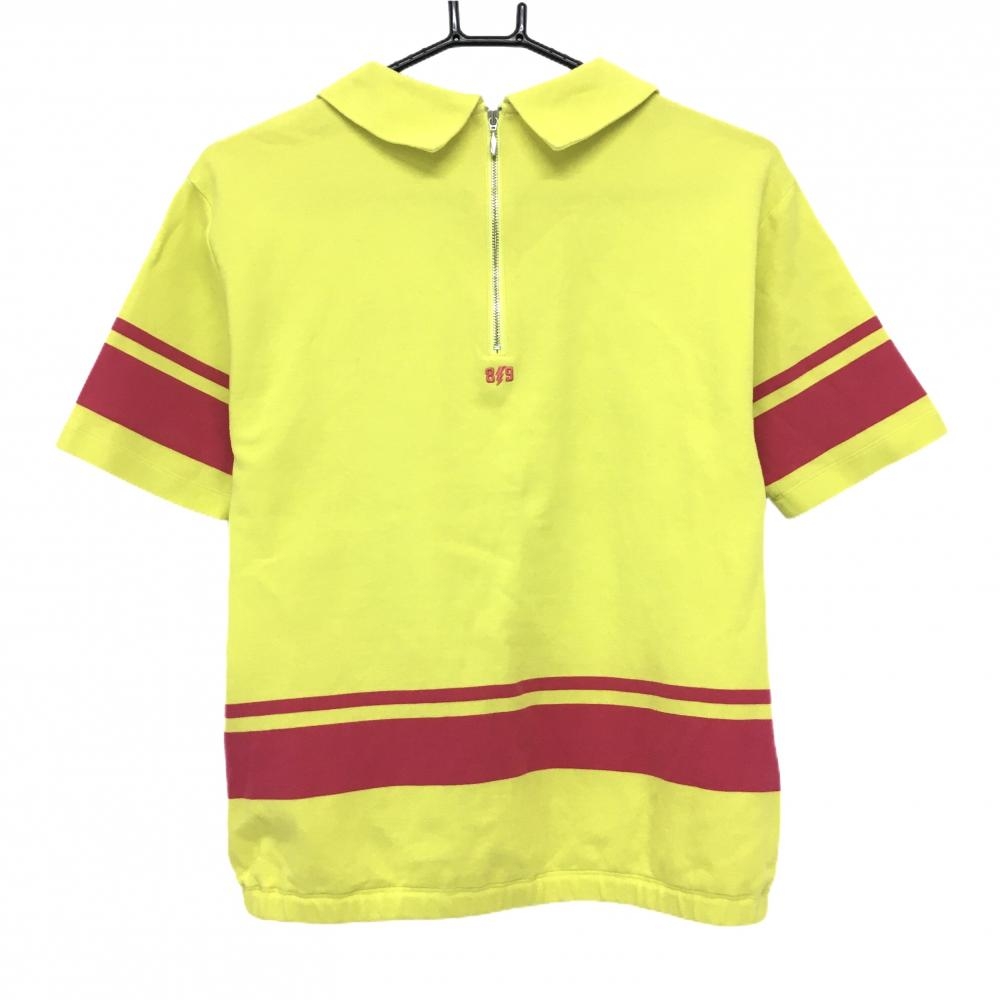 【美品】パーリーゲイツ 襟付き半袖シャツ イエロー×ピンク 後ろハーフジップ イナズマ レディース 0(S) ゴルフウェア PEARLY GATES