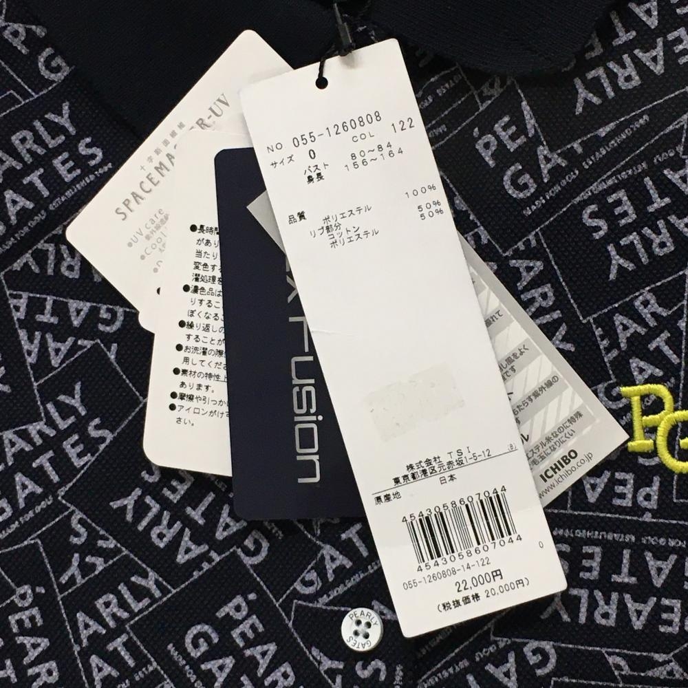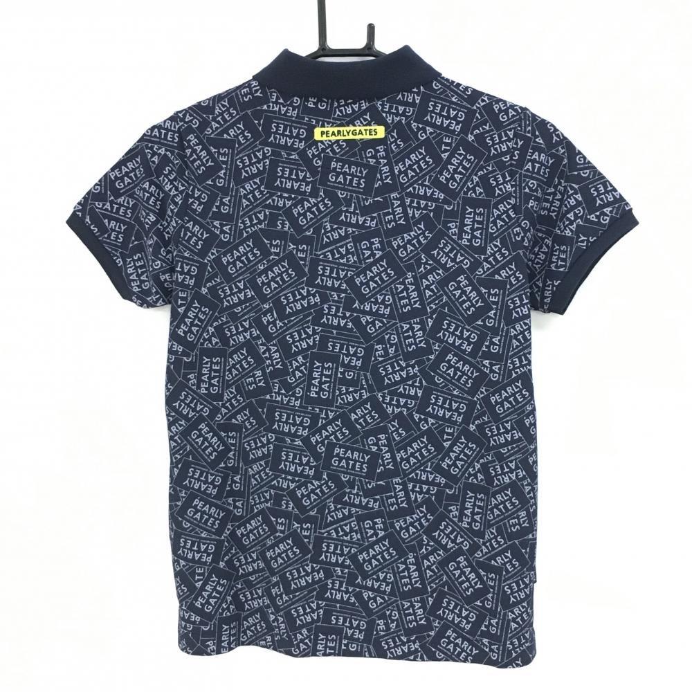 【新品】パーリーゲイツ 半袖ポロシャツ ネイビー×白 ロゴ総柄 吸水速乾 UVカット レディース 0(S) ゴルフウェア PEARLY GATES