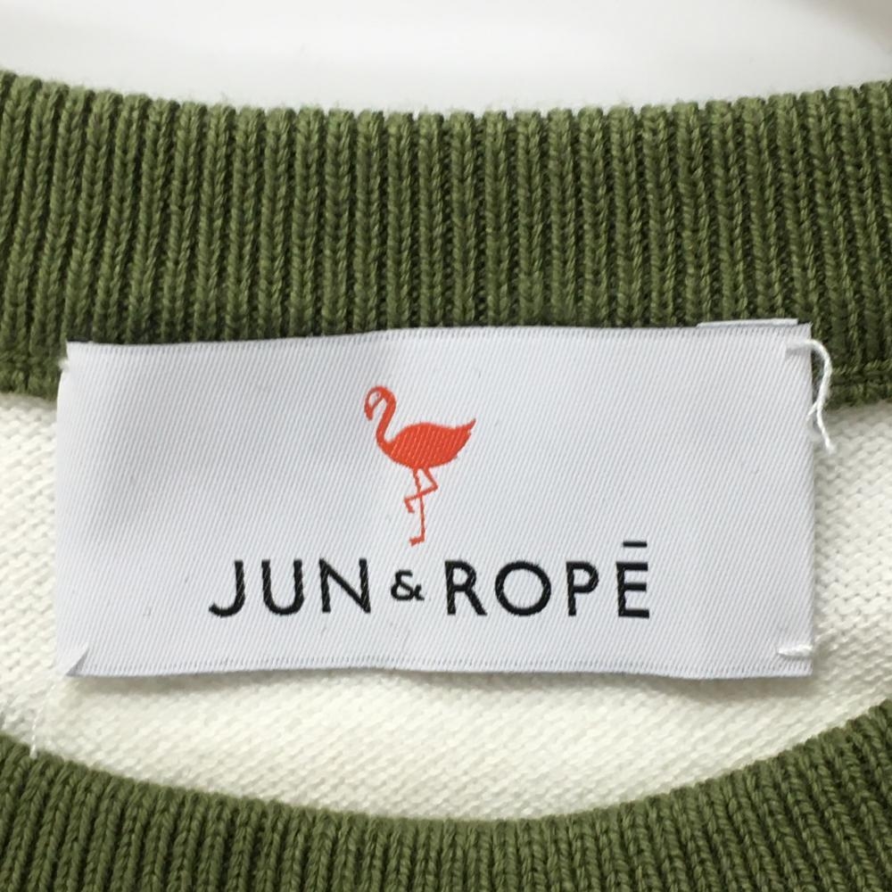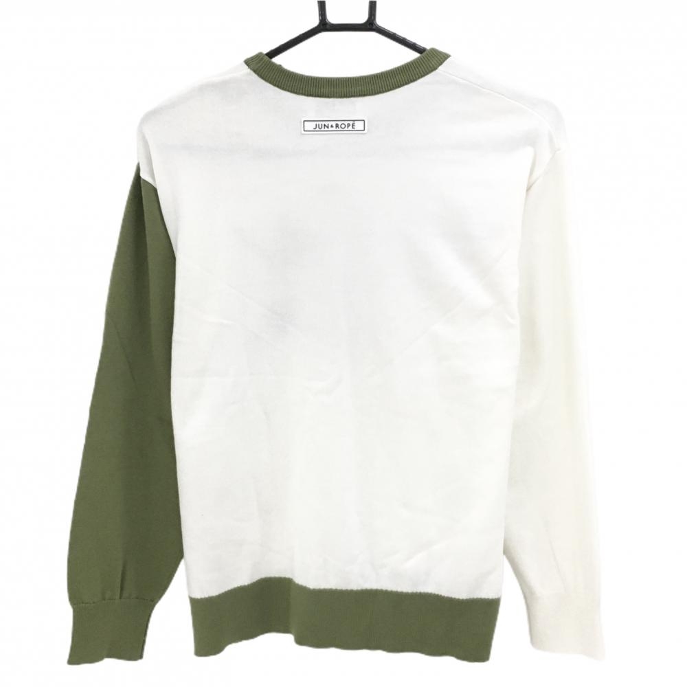 【美品】ジュンアンドロペ セーター 白×カーキ バイカラー コットン混 ニット レディース L ゴルフウェア JUN&ROPE