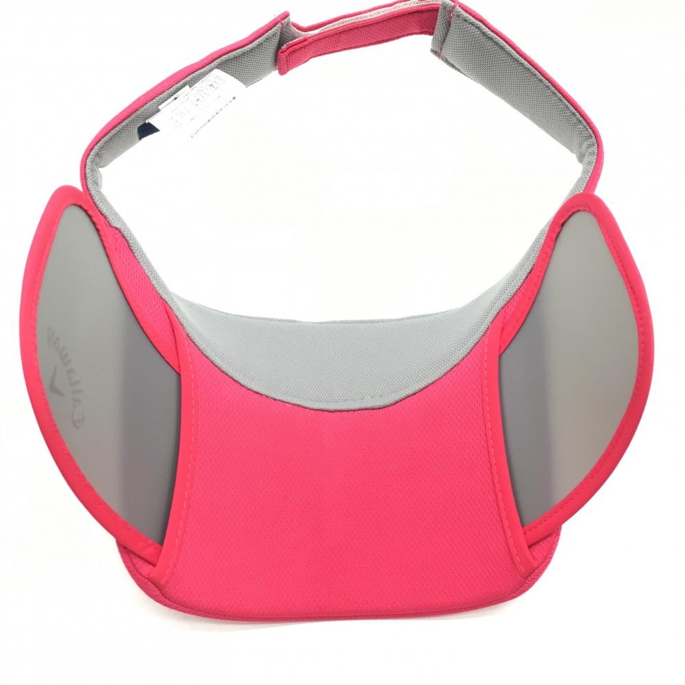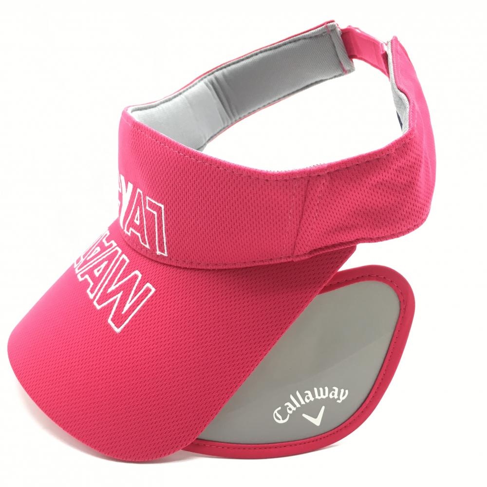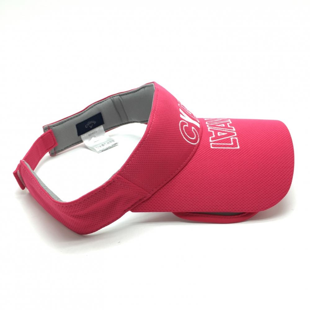【超美品】キャロウェイ サンバイザー ピンク×白 ロゴ刺しゅう 収納型可動式セル レディース FR ゴルフウェア Callaway