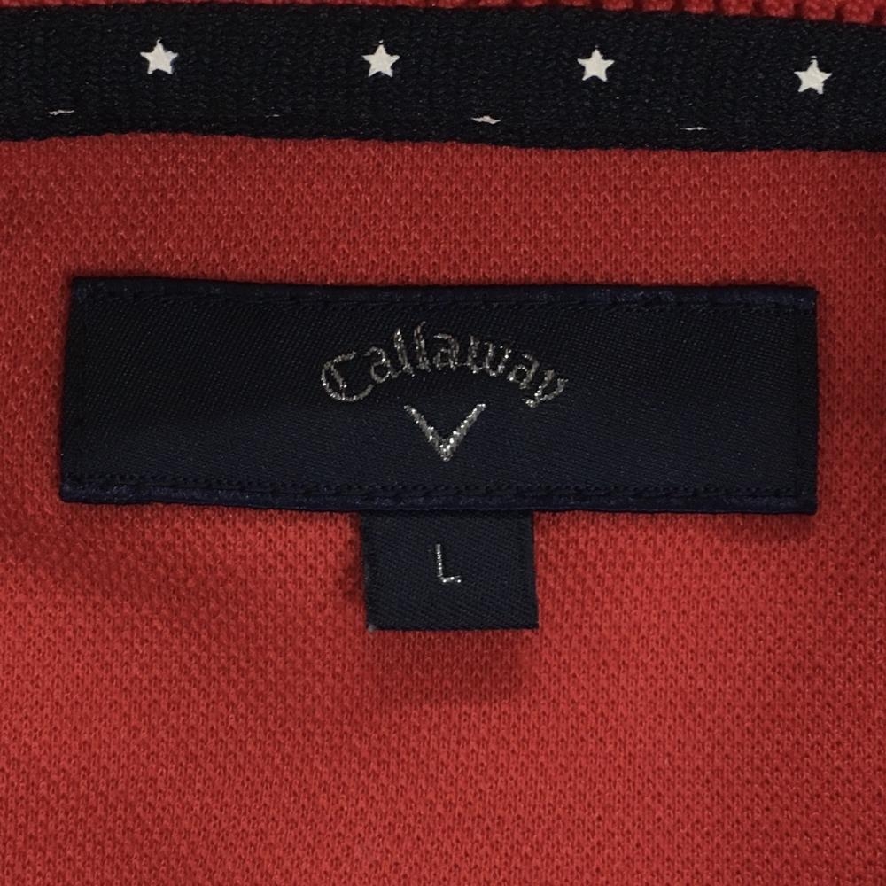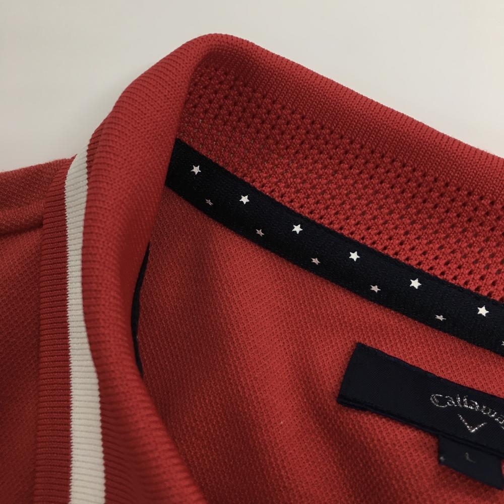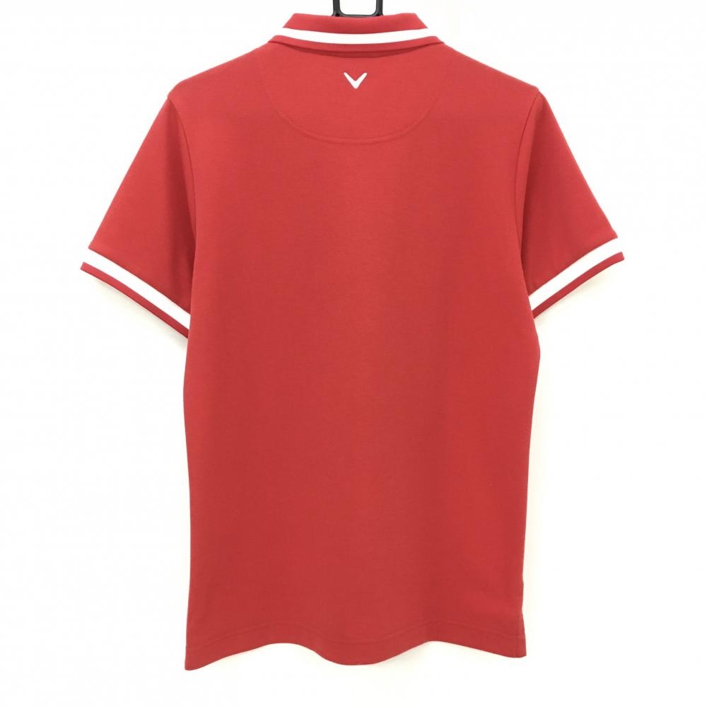 【美品】キャロウェイ 半袖ポロシャツ レッド×白 襟袖ライン メンズ L ゴルフウェア Callaway