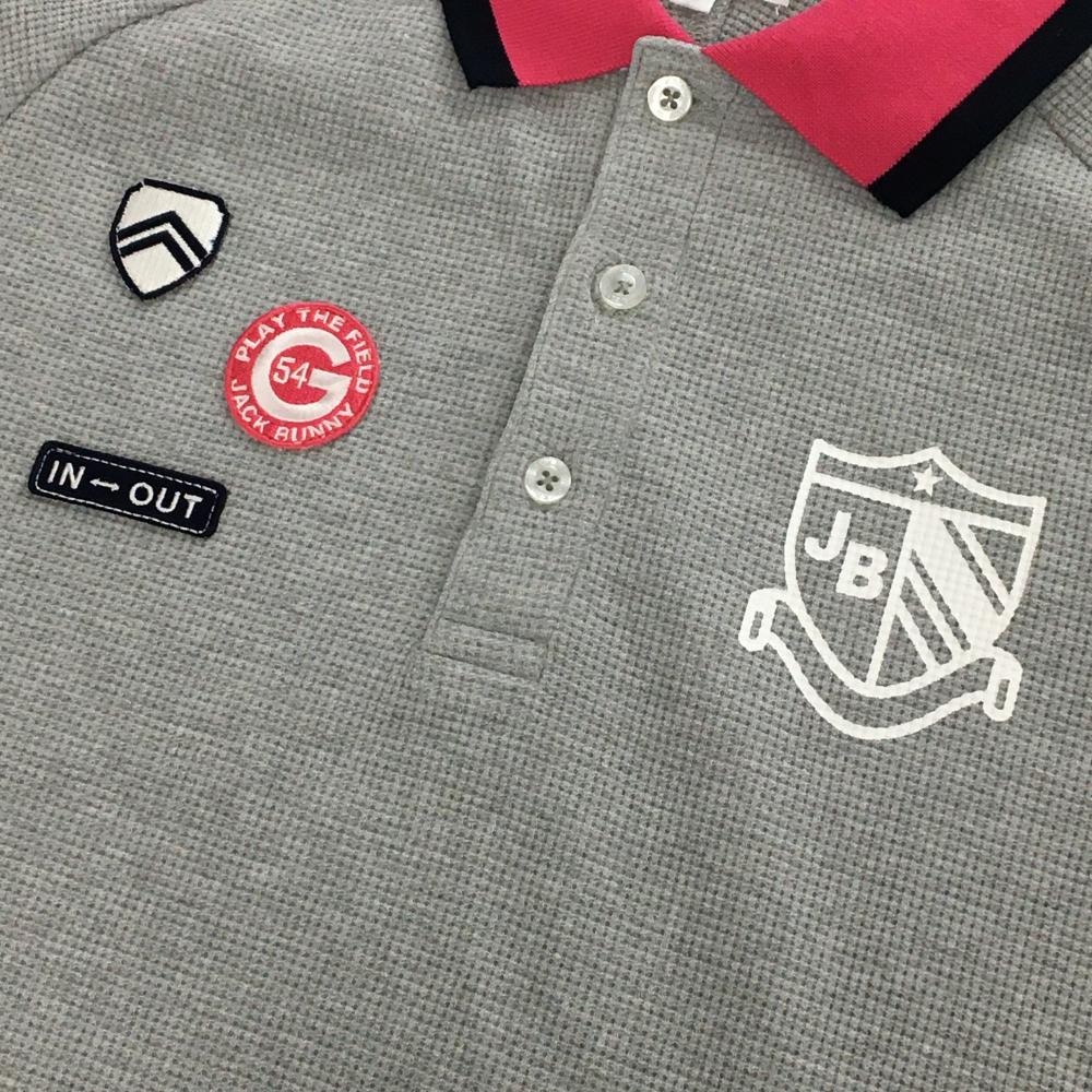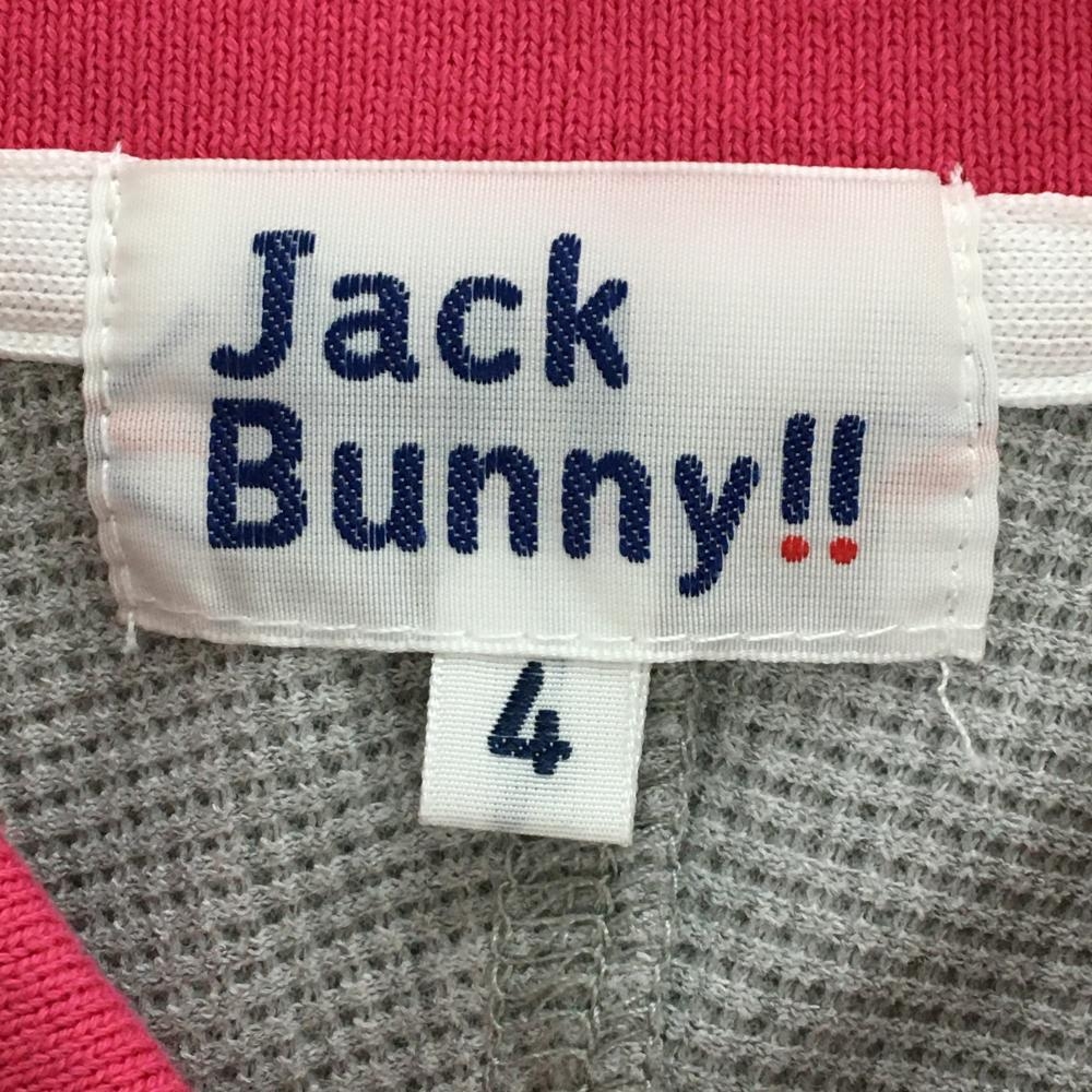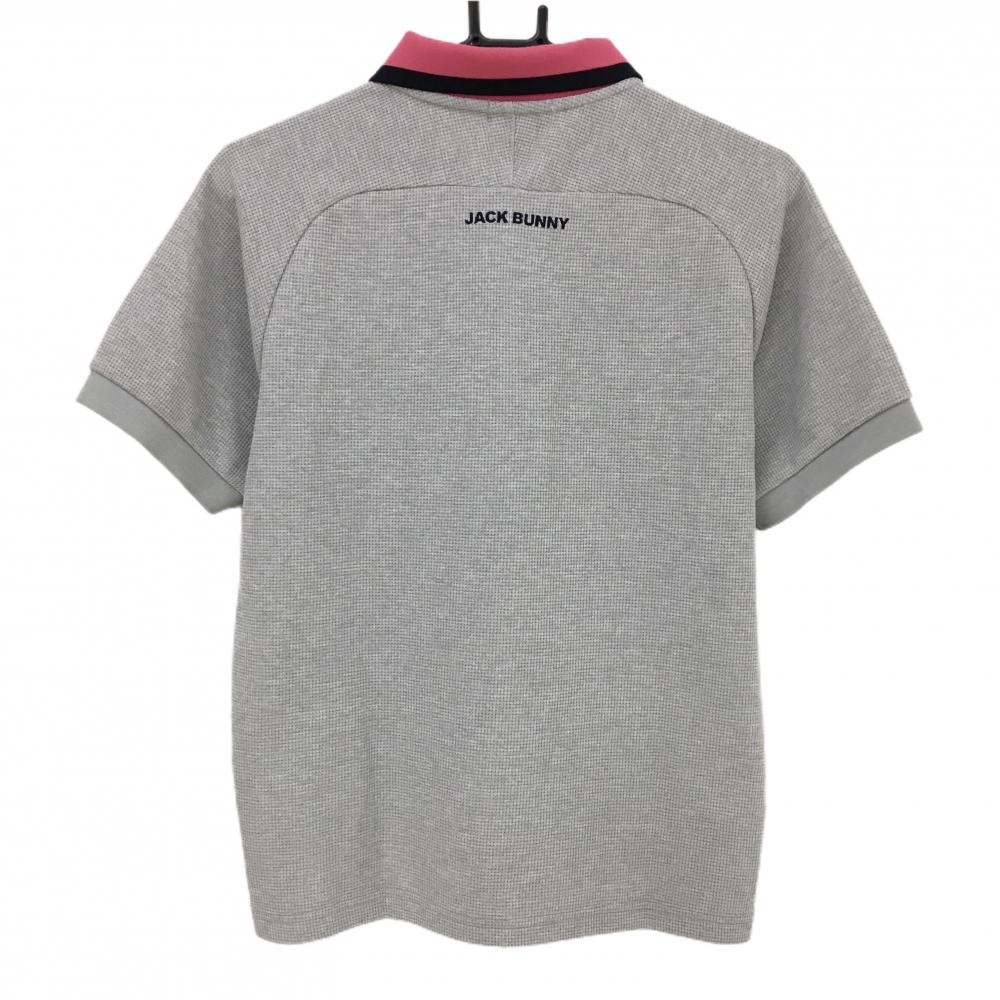 【超美品】ジャックバニー 半袖ポロシャツ グレー 織生地 襟ピンク メンズ 4(M) ゴルフウェア Jack Bunny