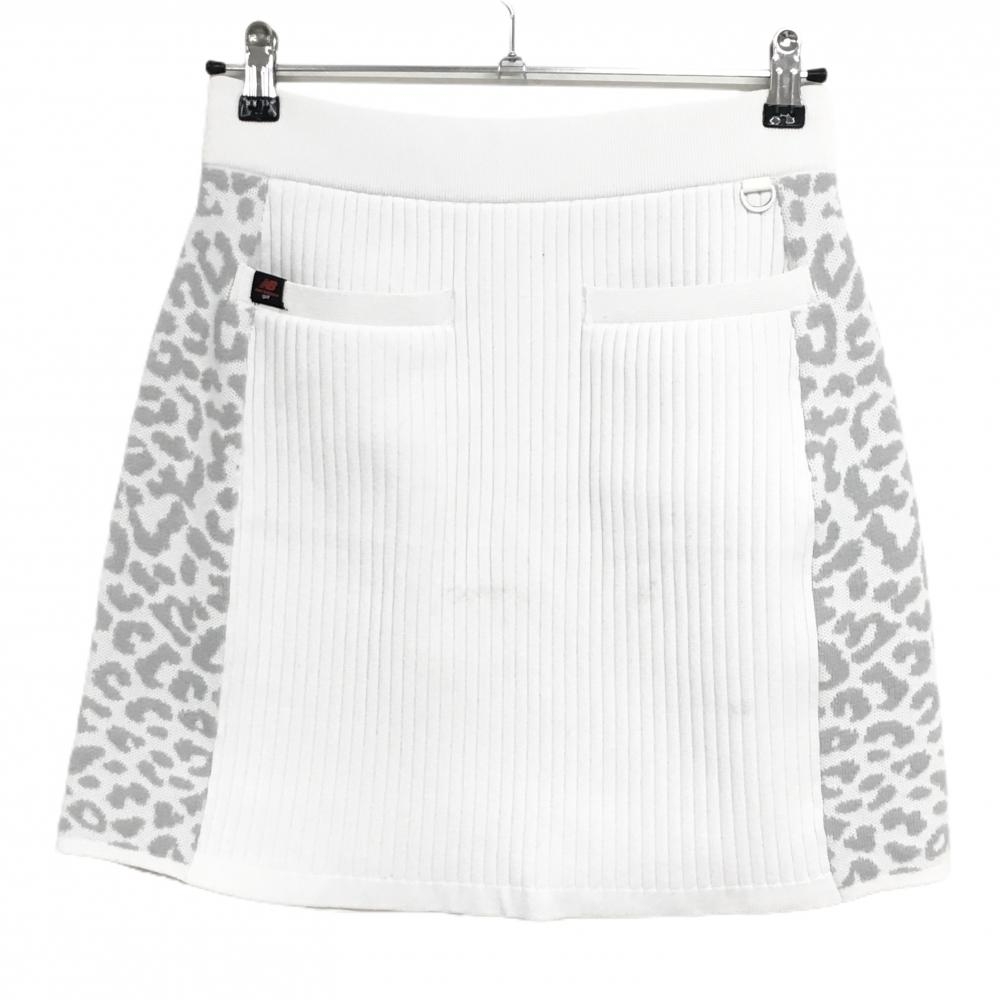 ニューバランスゴルフ ニットスカート 白×ライトグレー サイドレオパード ヒョウ柄 レディース 2(L) ゴルフウェア New Balance
