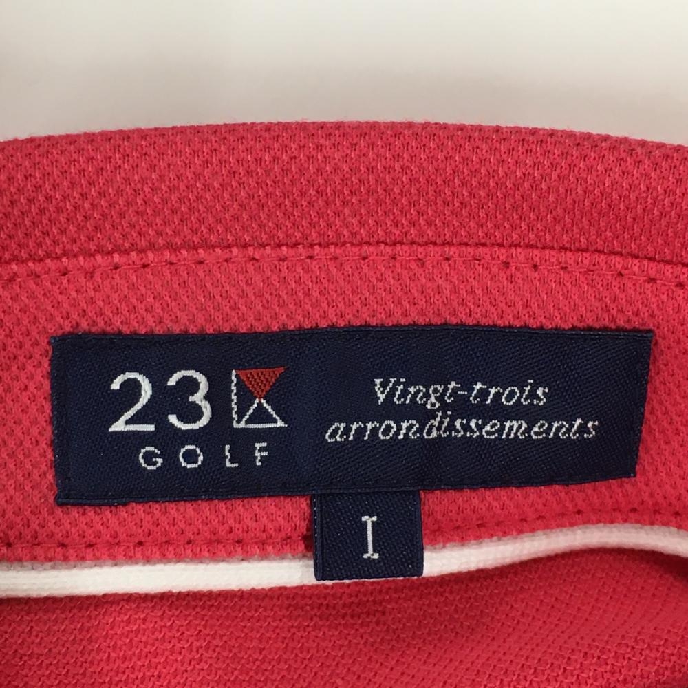 【超美品】23区ゴルフ 半袖ポロシャツ ピンク×ネイビー 袖ネイビーライン レディース I(M) ゴルフウェア 23区