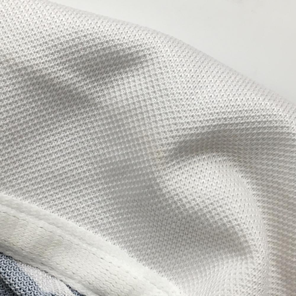 【美品】ビバハート 半袖ポロシャツ 白×マルチカラー ボーダー 袖フリル レディース 40(M) ゴルフウェア VIVA HEART