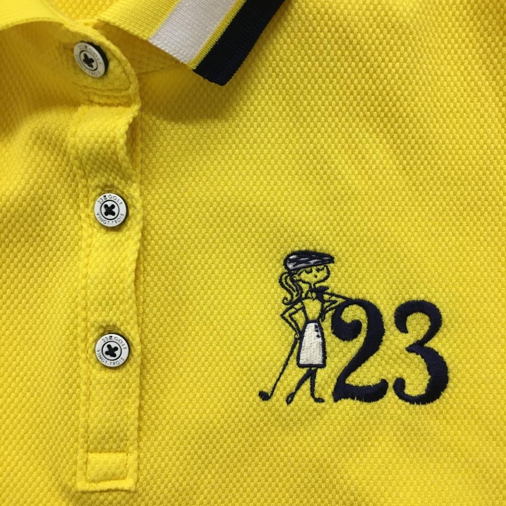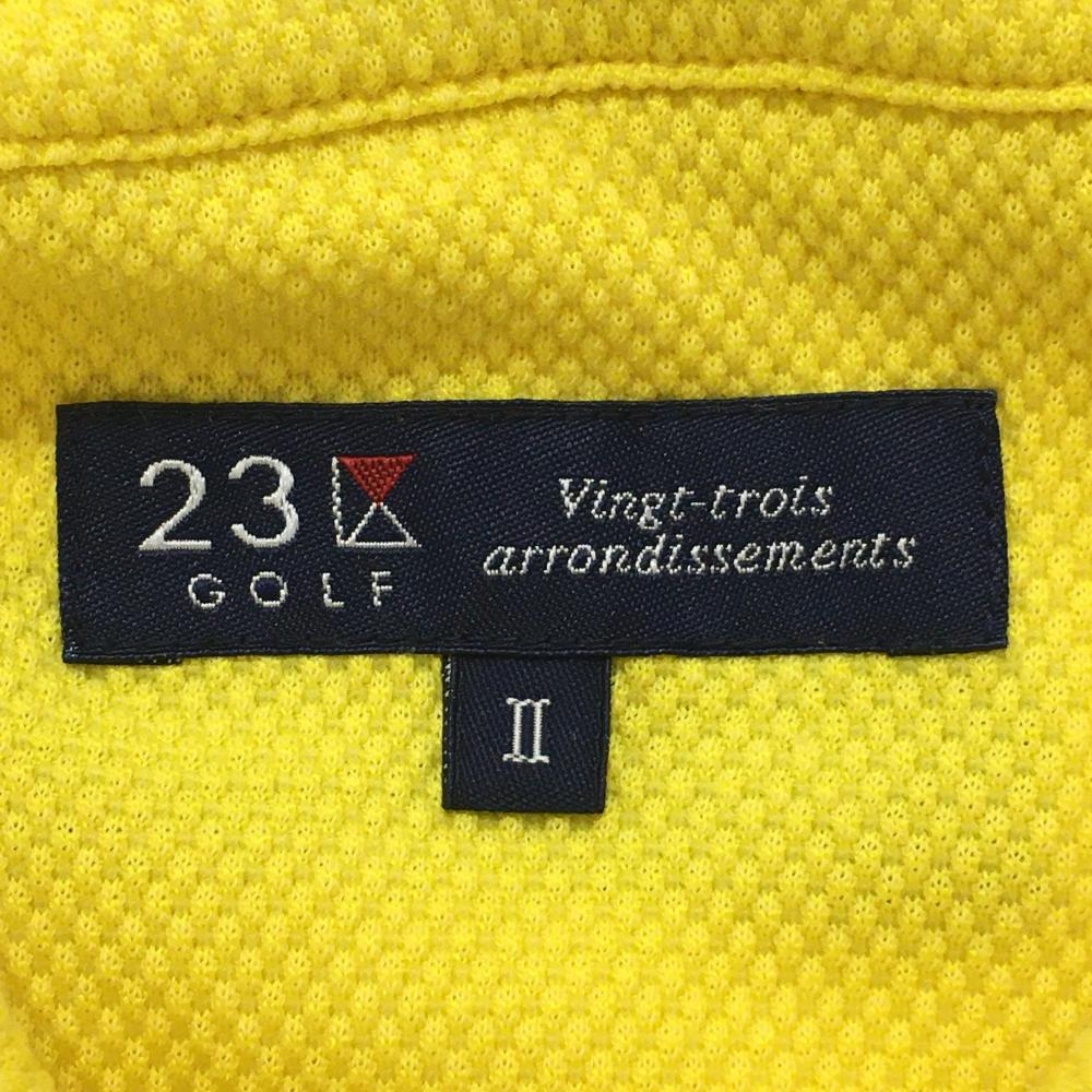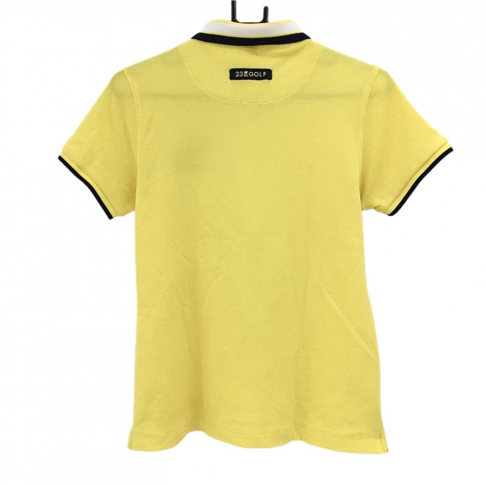 【超美品】23区ゴルフ 半袖ポロシャツ イエロー 襟・袖口ライン ロゴ刺しゅう レディース II ゴルフウェア 23区
