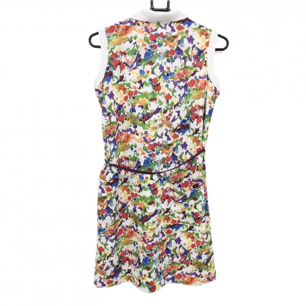 【超美品】ニューバランスゴルフ ノースリーブワンピース 白×マルチカラー 総柄 レディース 0(S) ゴルフウェア New Balance