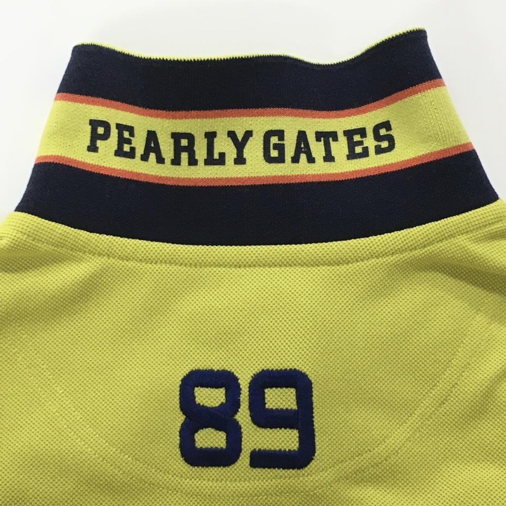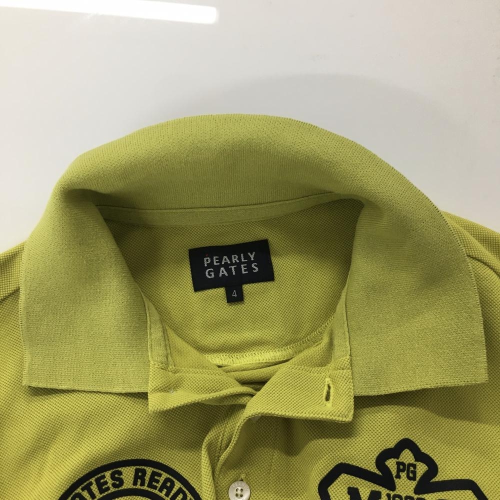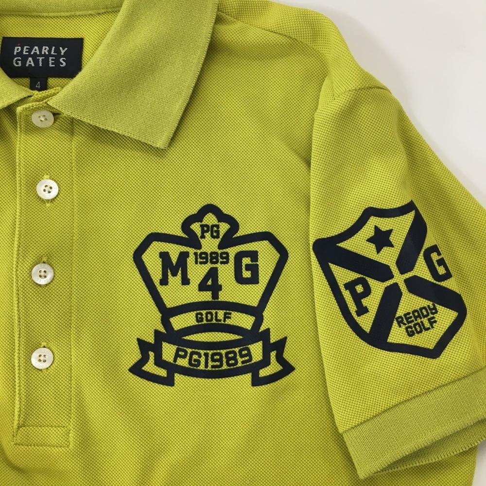 パーリーゲイツ 半袖ポロシャツ ライムグリーン×ネイビー ロゴプリント メンズ 4(M) ゴルフウェア PEARLY GATES