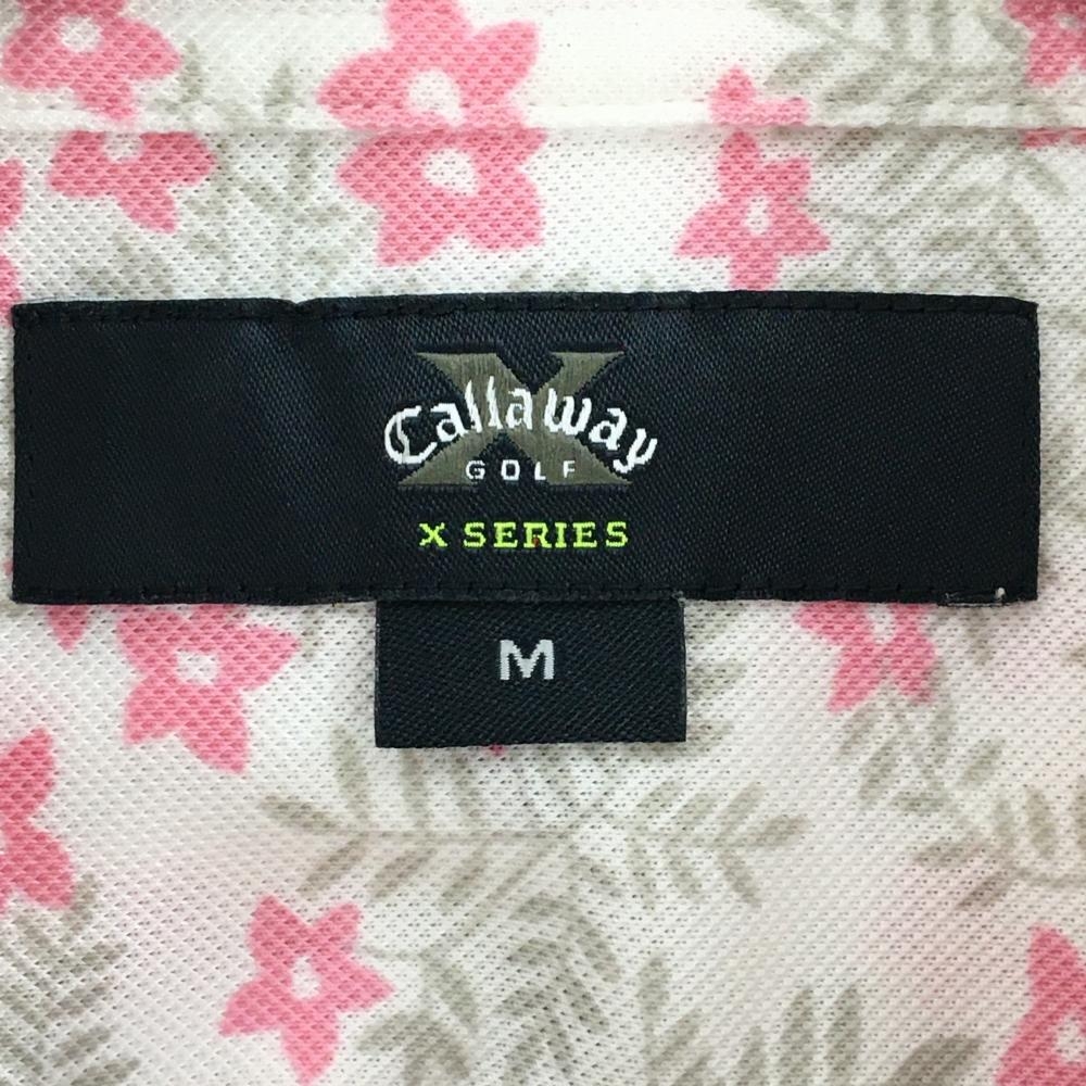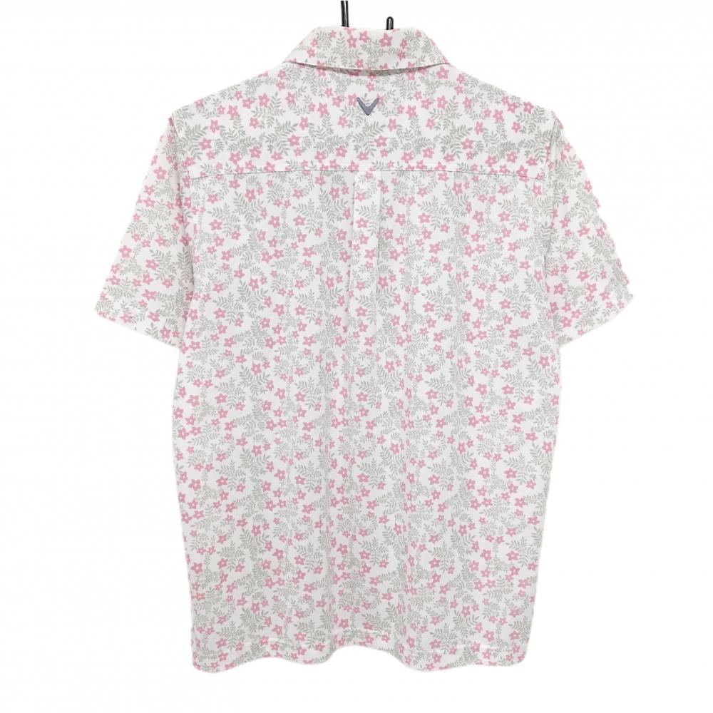 キャロウェイ 半袖ポロシャツ 白×ピンク 花柄 メンズ M ゴルフウェア Callaway