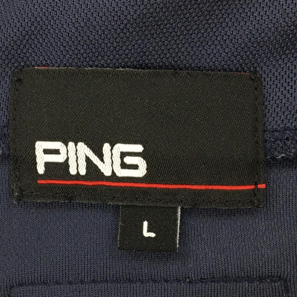 ピン 半袖ハイネックシャツ ネイビー×シルバー ビックロゴ メンズ L ゴルフウェア PING