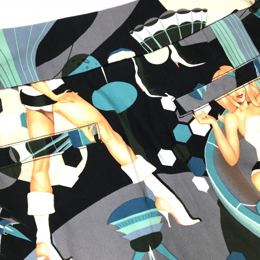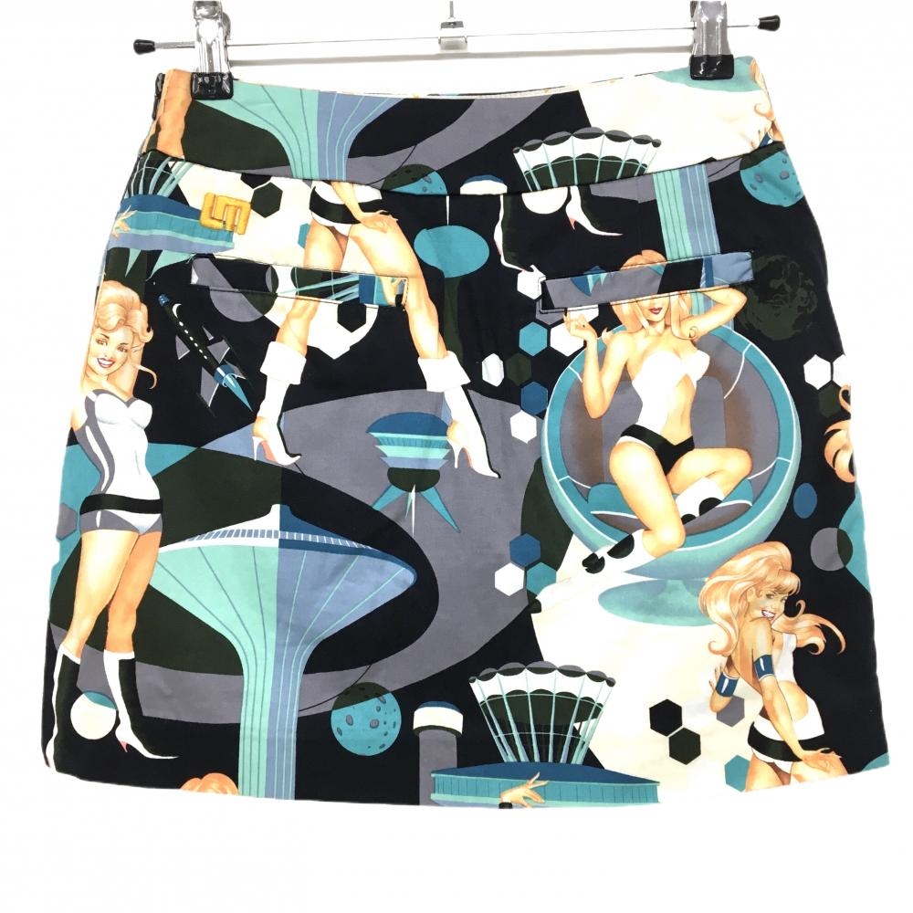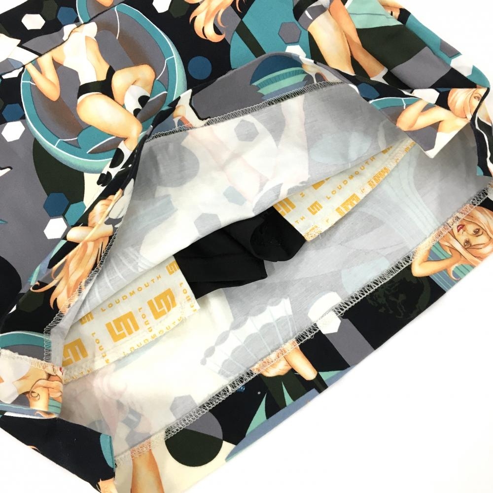 【美品】ラウドマウス スカート 黒×ベージュ×ブルーグリーン 女性柄 内側インナーパンツ レディース US 0 ゴルフウェア LOUDMOUTH