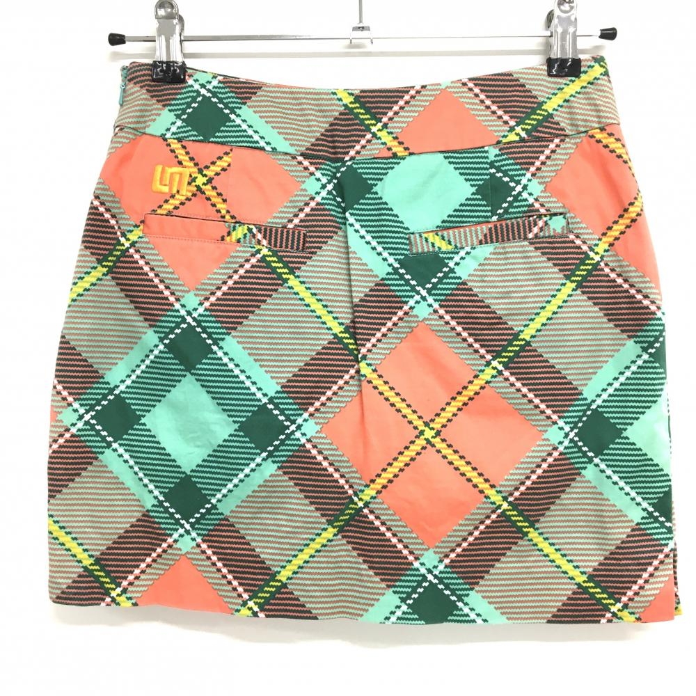 【美品】ラウドマウス スカート ミントグリーン系×サーモンピンク系 チェック レディース US 0 ゴルフウェア LOUDMOUTH