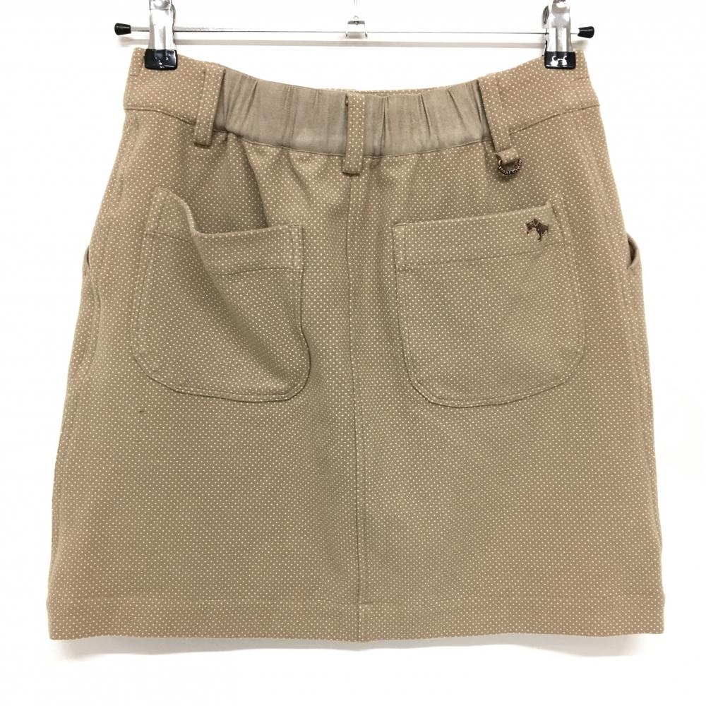 【超美品】ヒールクリーク ストレッチスカート ベージュ系×白 ピンドット 秋冬 レディース 38(S) ゴルフウェア Heal Creek