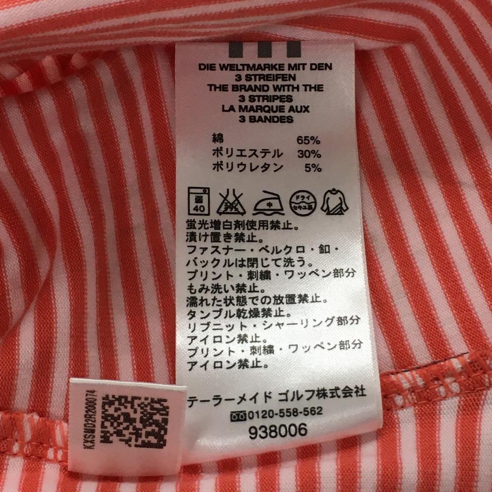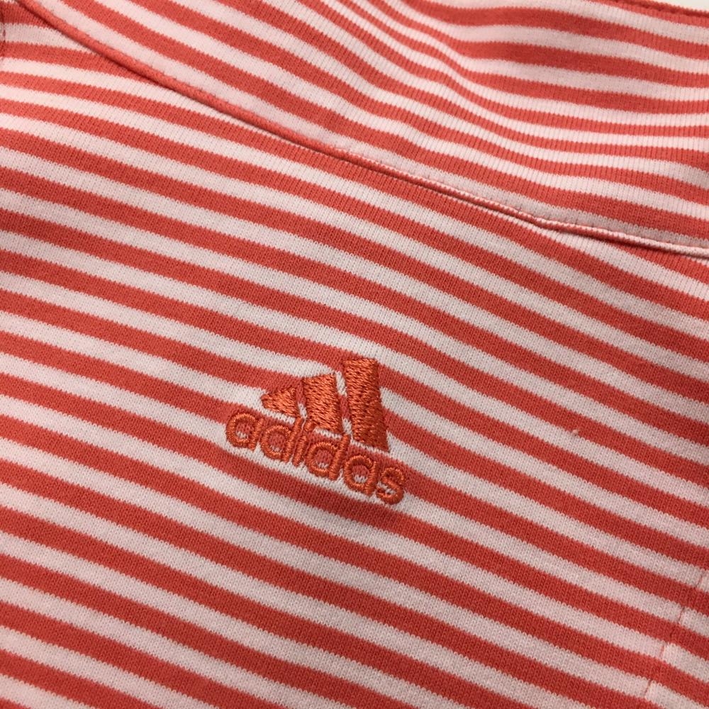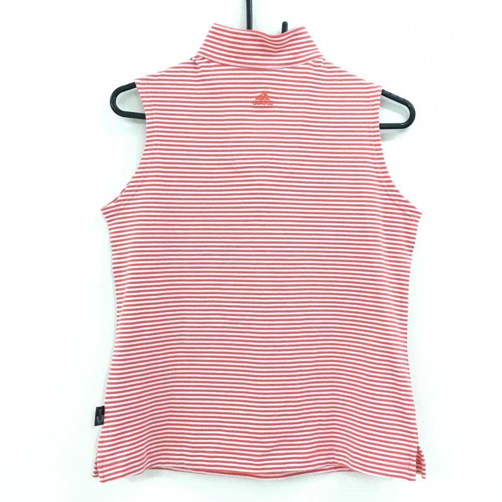 【美品】アディダス ノースリーブハイネックシャツ レッドピンク×白 ボーダー柄 ハーフジップ レディース L/G ゴルフウェア adidas