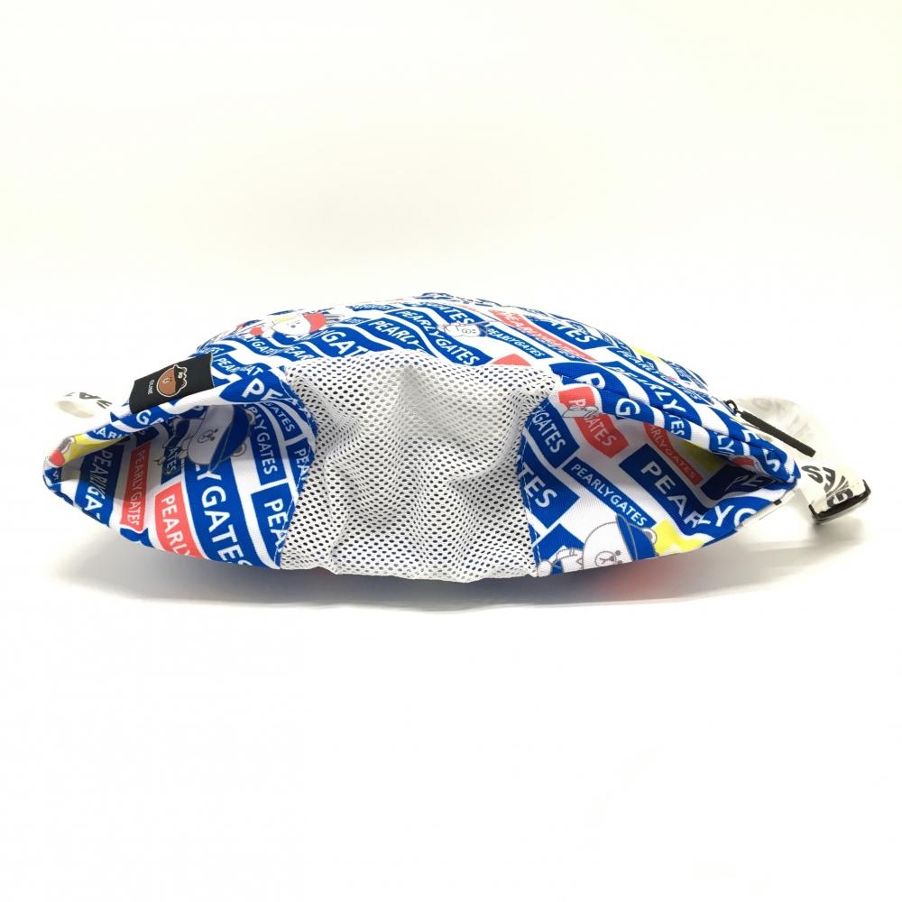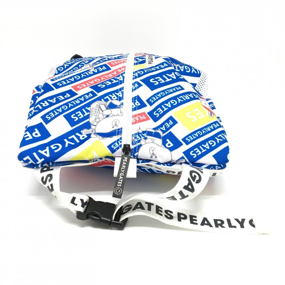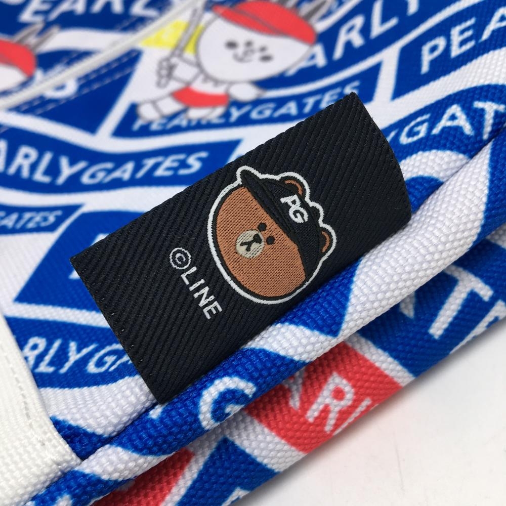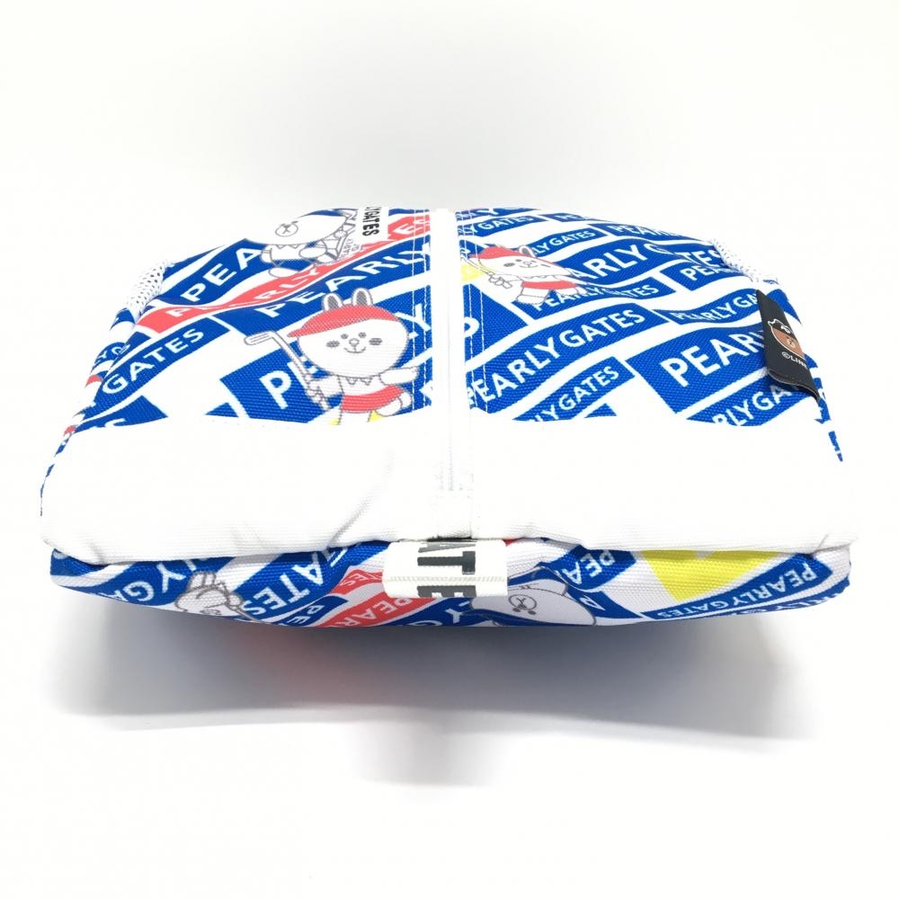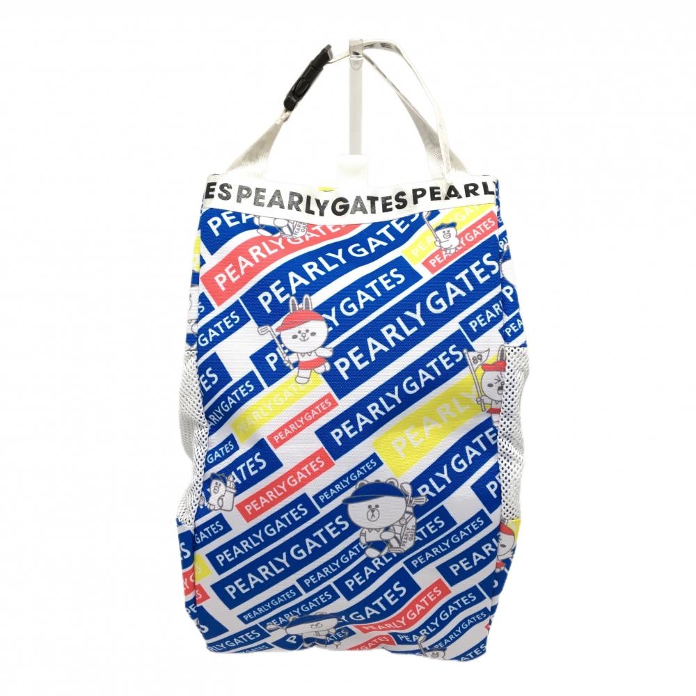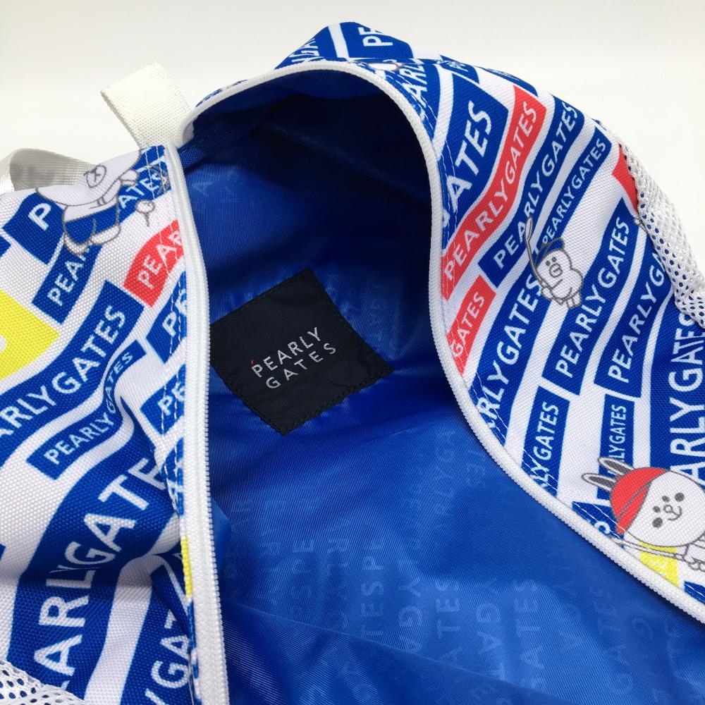 【超美品】パーリーゲイツ×LINE FRIENDS シューズケース 白×ブルー ロゴ総柄 サイドメッシュゴルフ PEARLY GATES