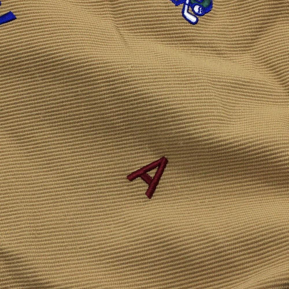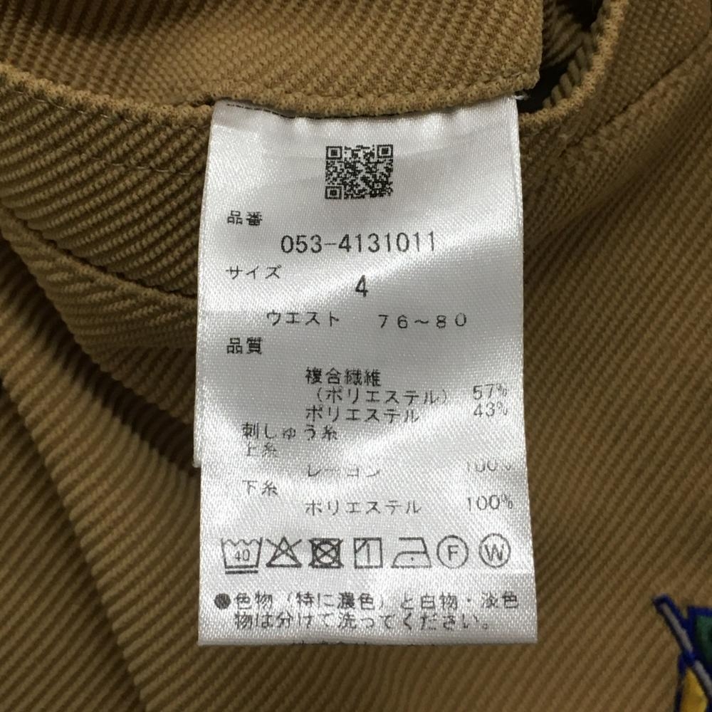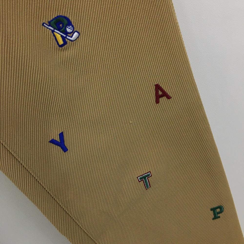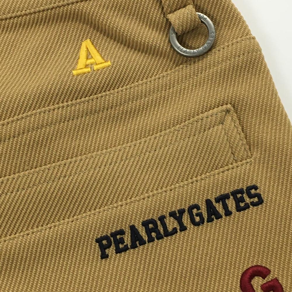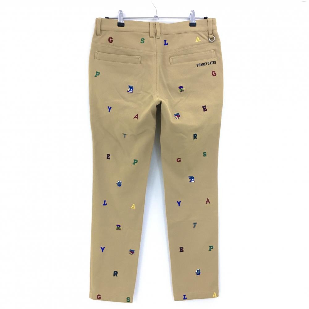 【美品】パーリーゲイツ パンツ ライトブラウン系×マルチカラー 英字総柄 裏微起毛 メンズ 4(M) ゴルフウェア 2024年モデル PEARLY GATES