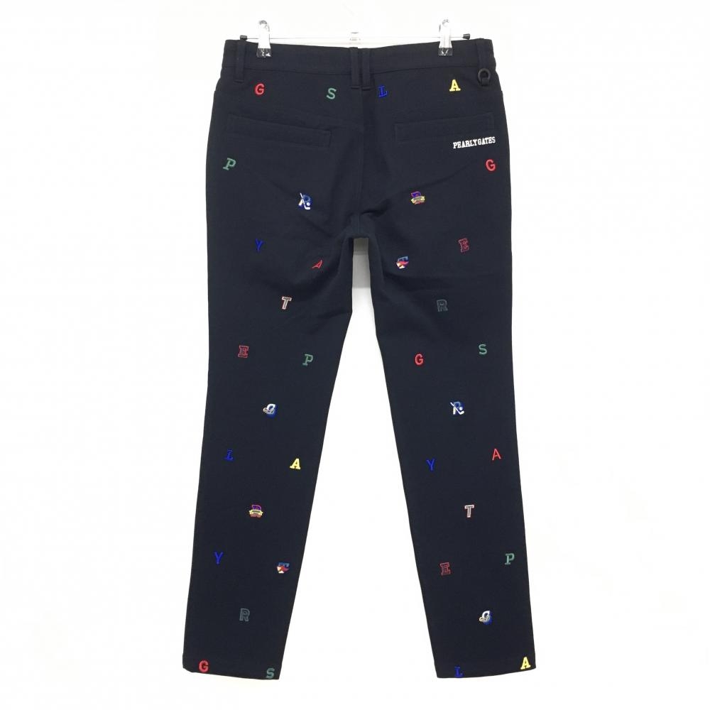 【美品】パーリーゲイツ パンツ ネイビー×マルチカラー 英字総柄 メンズ 4(M) ゴルフウェア 2024年モデル PEARLY GATES