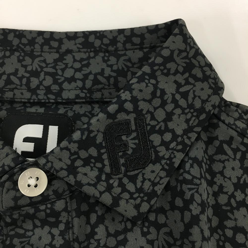 【超美品】フットジョイ 半袖ポロシャツ 黒×グレー 花柄 メンズ M ゴルフウェア 2023年モデル FootJoy