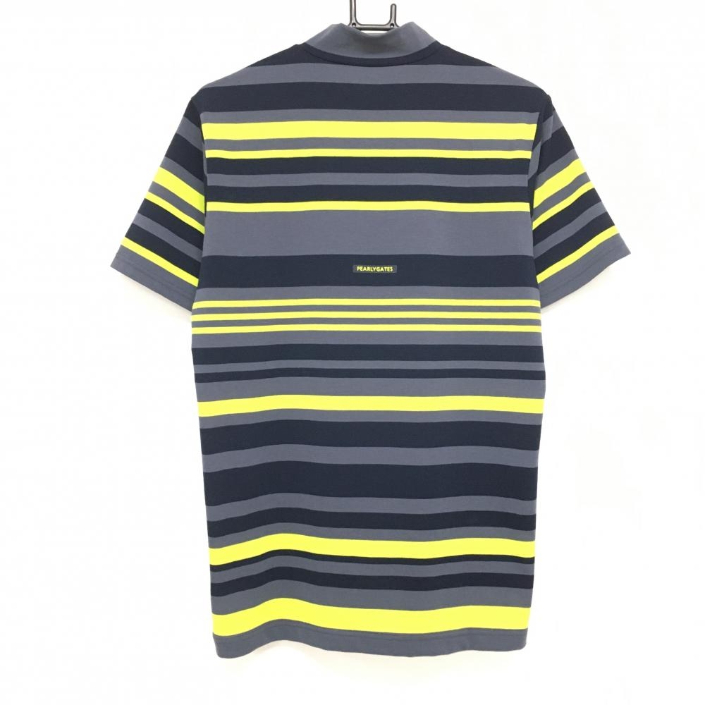 【超美品】パーリーゲイツ 半袖ハイネックシャツ グレー×ライムグリーン メンズ 5(L) ゴルフウェア 2024年モデル PEARLY GATES