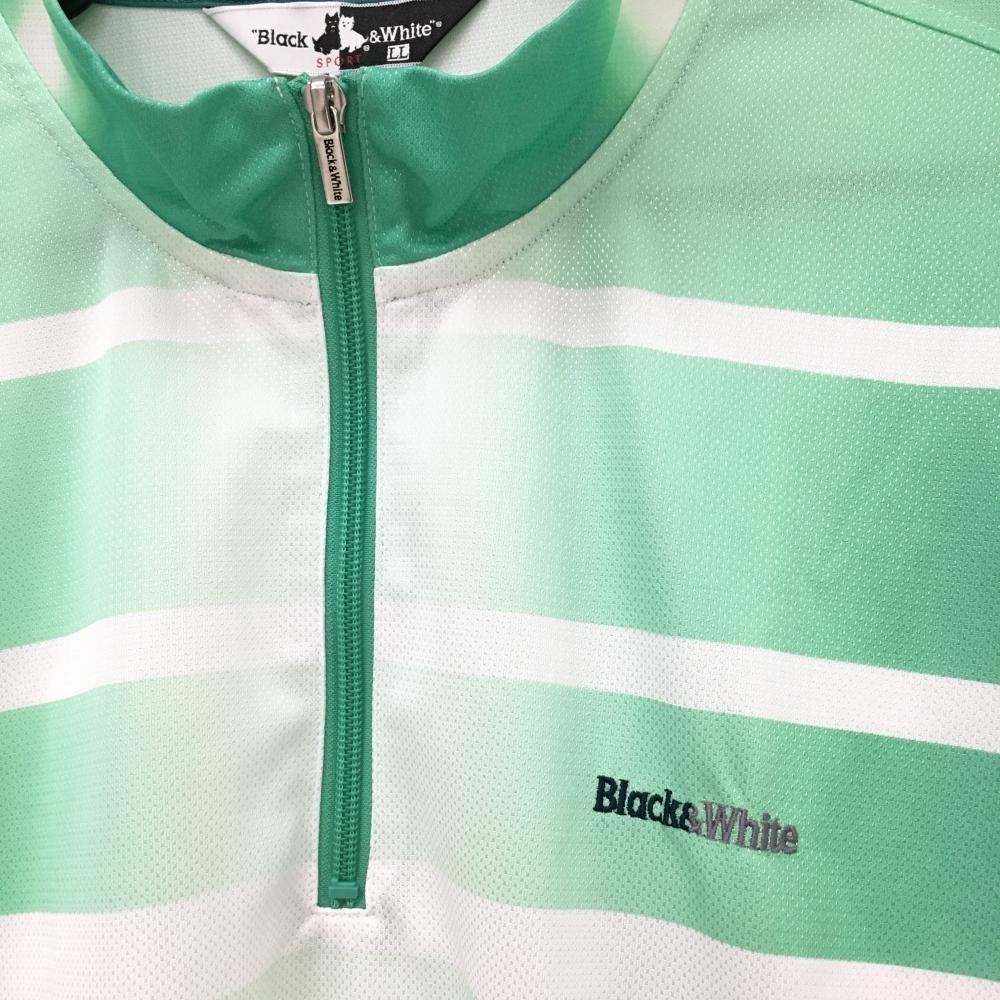 【超美品】ブラックアンドホワイト 半袖ハイネックシャツ グリーン×白 ボーダー グラデーション メンズ LL ゴルフウェア Black&White
