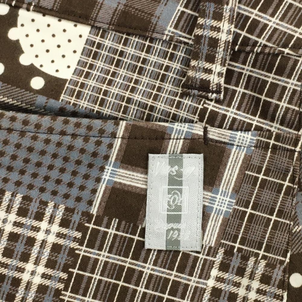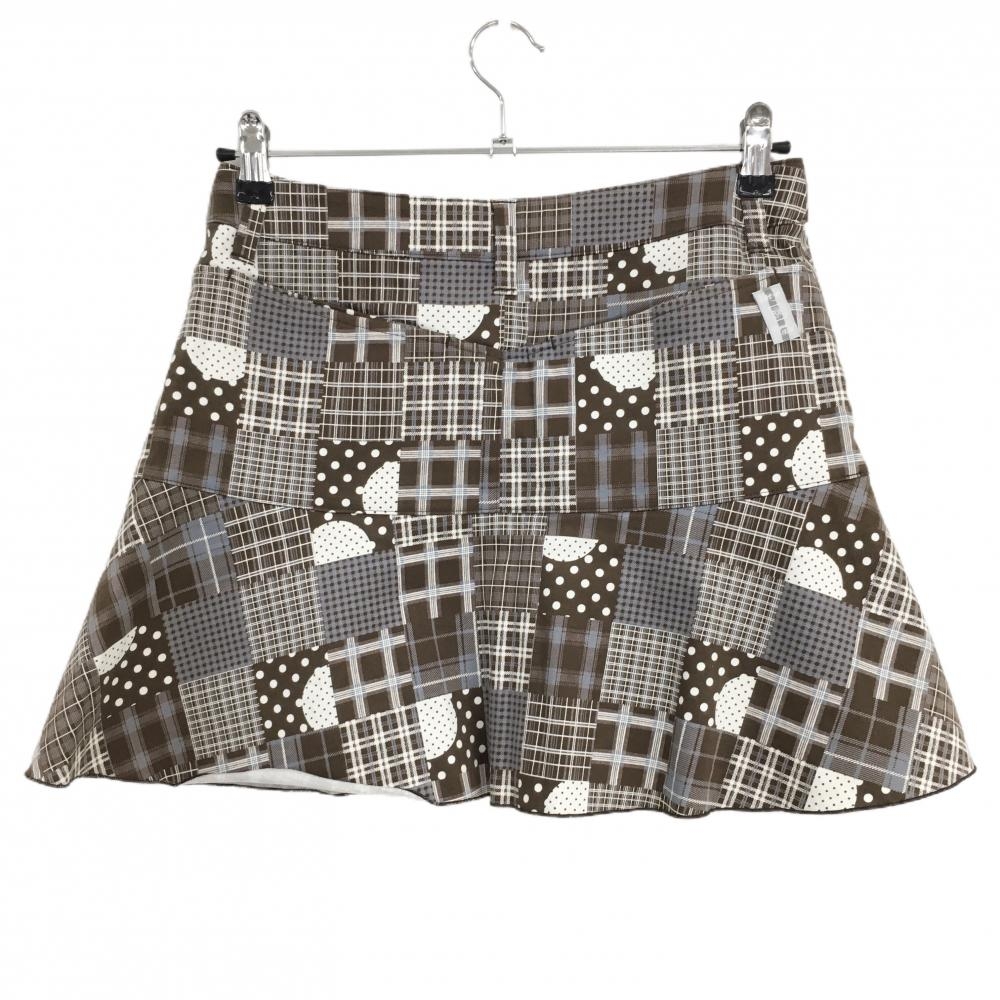 【超美品】ゾーイ スカート ブラウン×白×グレーブルー 総柄 チェック ストレッチ レディース 38(M) ゴルフウェア ZOY