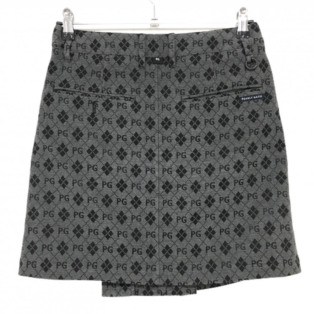 【超美品】パーリーゲイツ スカート ダークグレー×黒 アーガイル・ロゴ総柄 レディース 0(S) ゴルフウェア PEARLY GATES