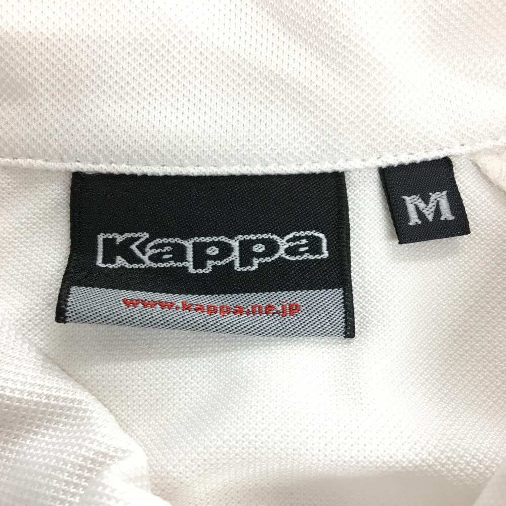 【美品】カッパ 半袖ポロシャツ 白×グリーン×レッド 胸ロゴ ライン レディース M ゴルフウェア Kappa