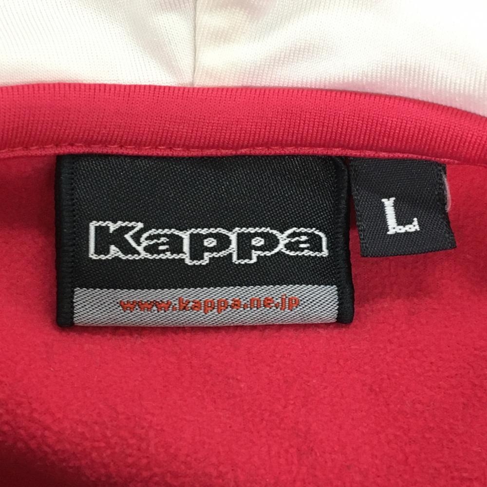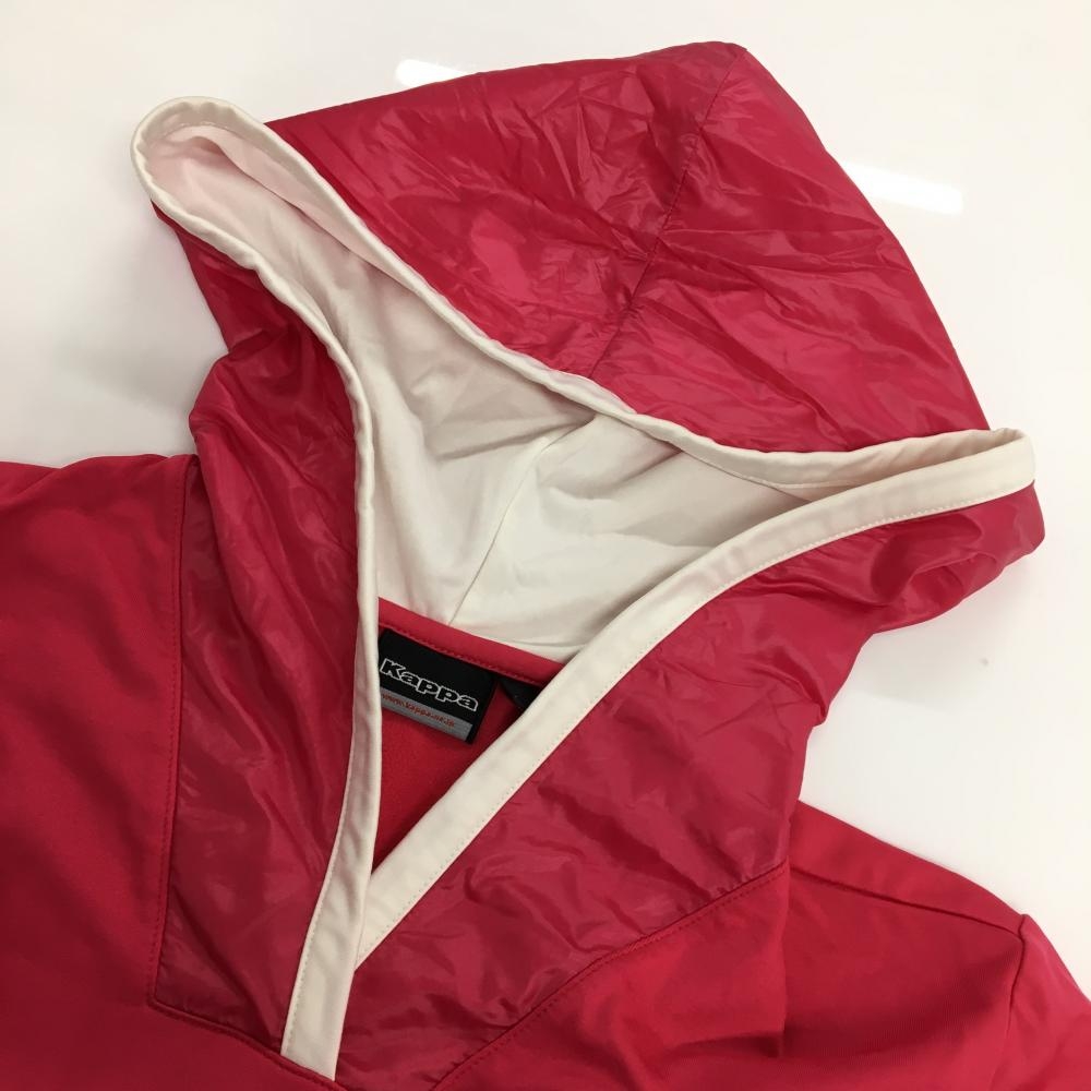 【美品】カッパ 異素材パーカー ピンク×白 裏微起毛 胸ロゴ レディース L ゴルフウェア Kappa