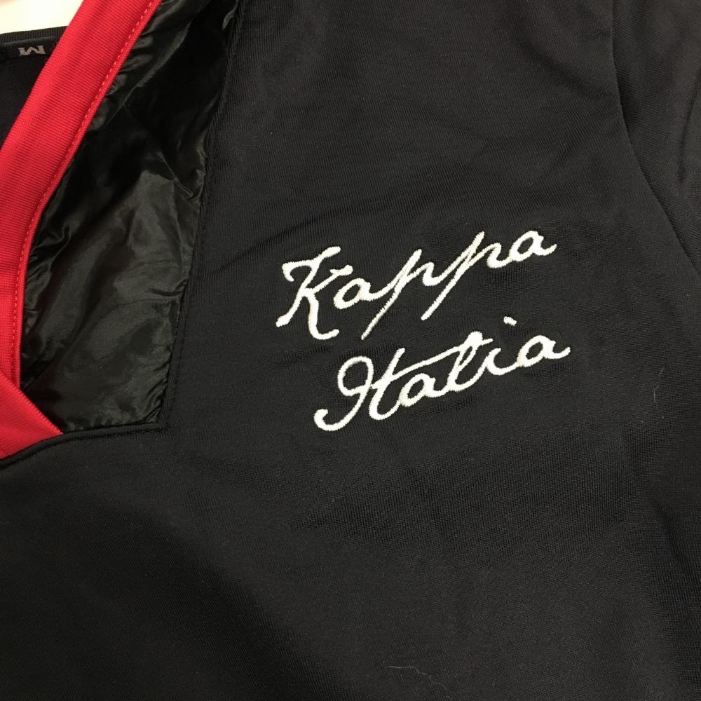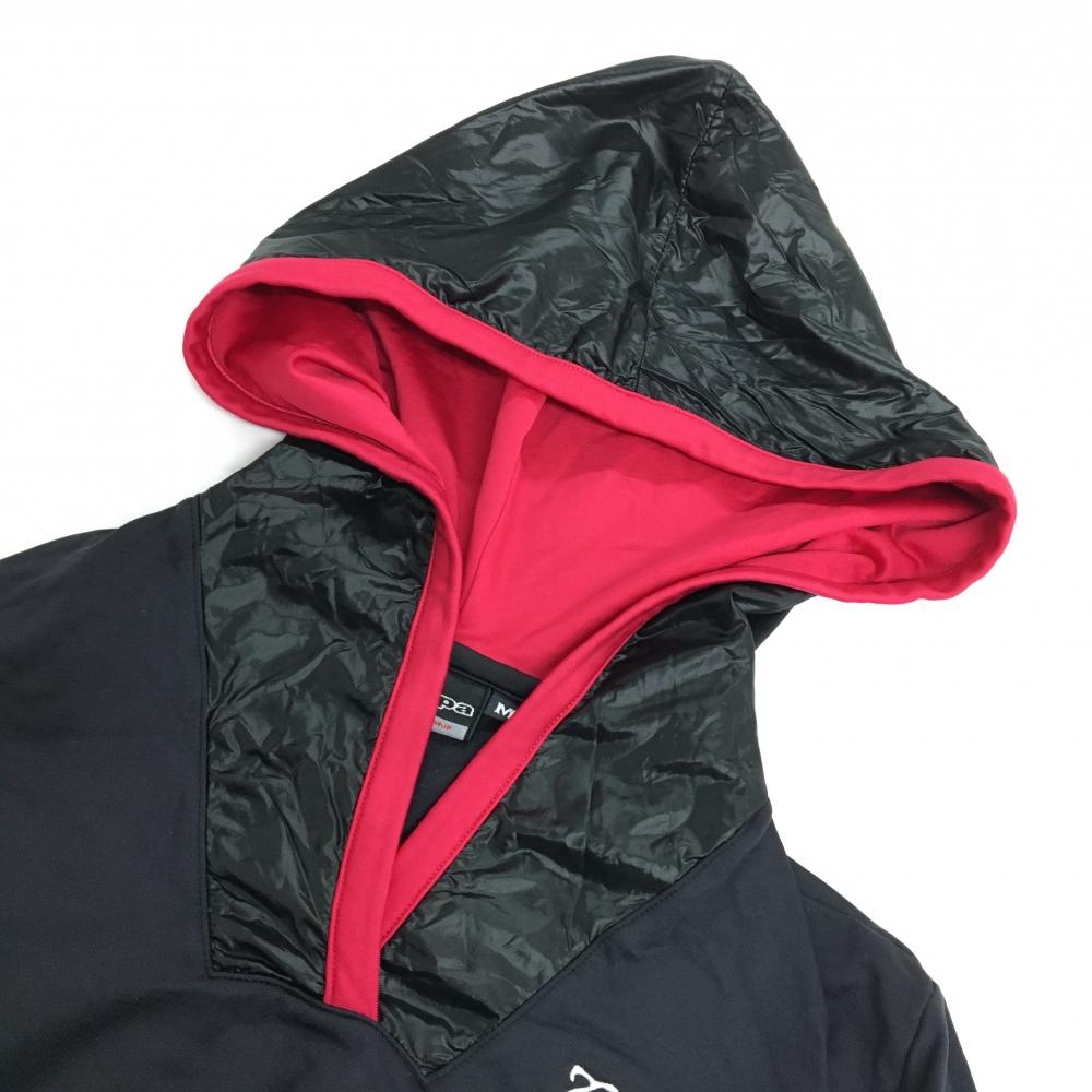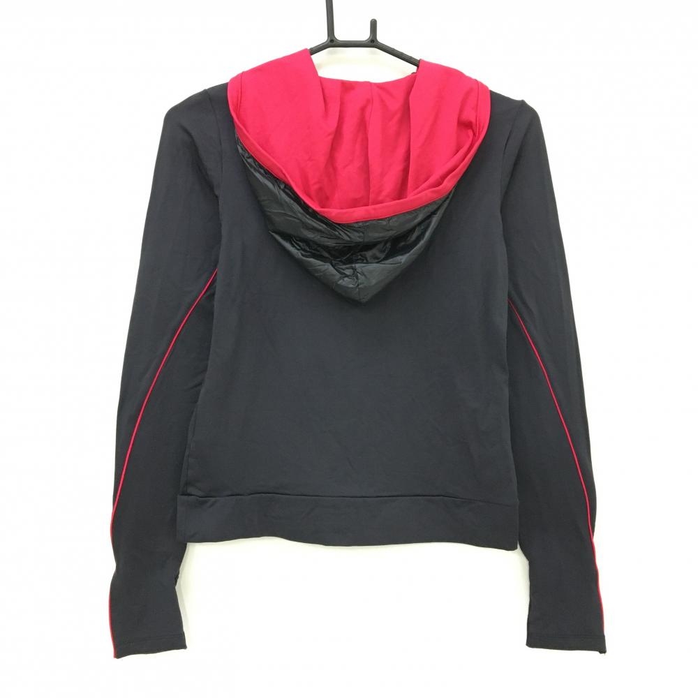 【美品】カッパ 異素材パーカー 黒×ピンク 裏微起毛 胸ロゴ ナイロン部分しわ レディース M ゴルフウェア Kappa