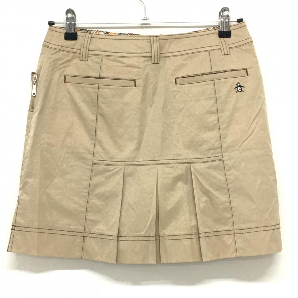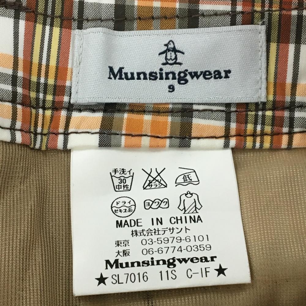 【超美品】マンシングウェア スカート ベージュ×ブラウン 一部チェック 内側インナーパンツ レディース 9 ゴルフウェア Munsingwear