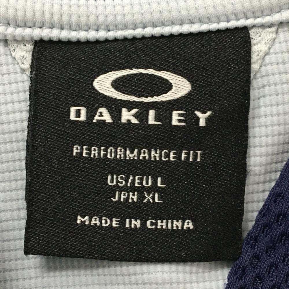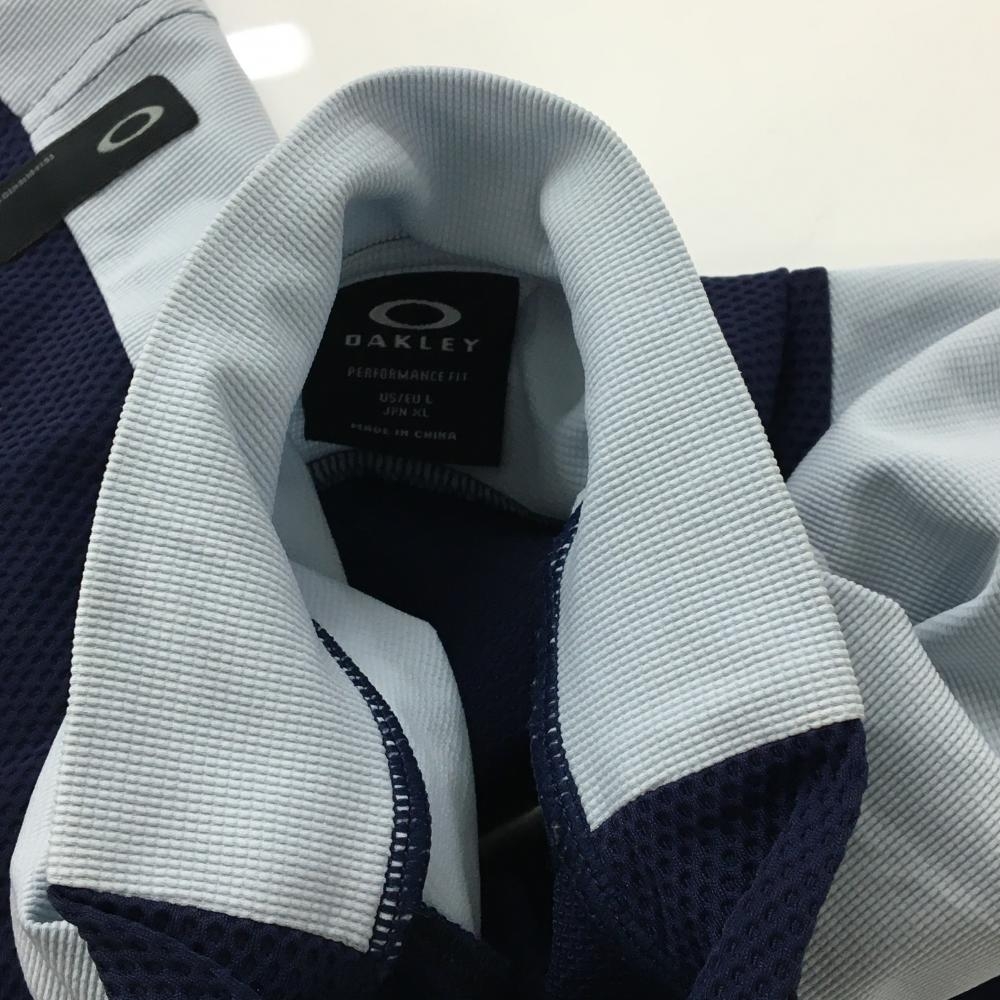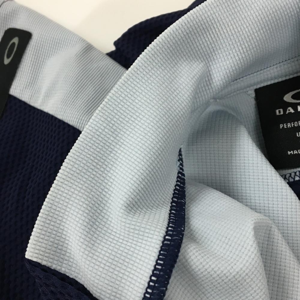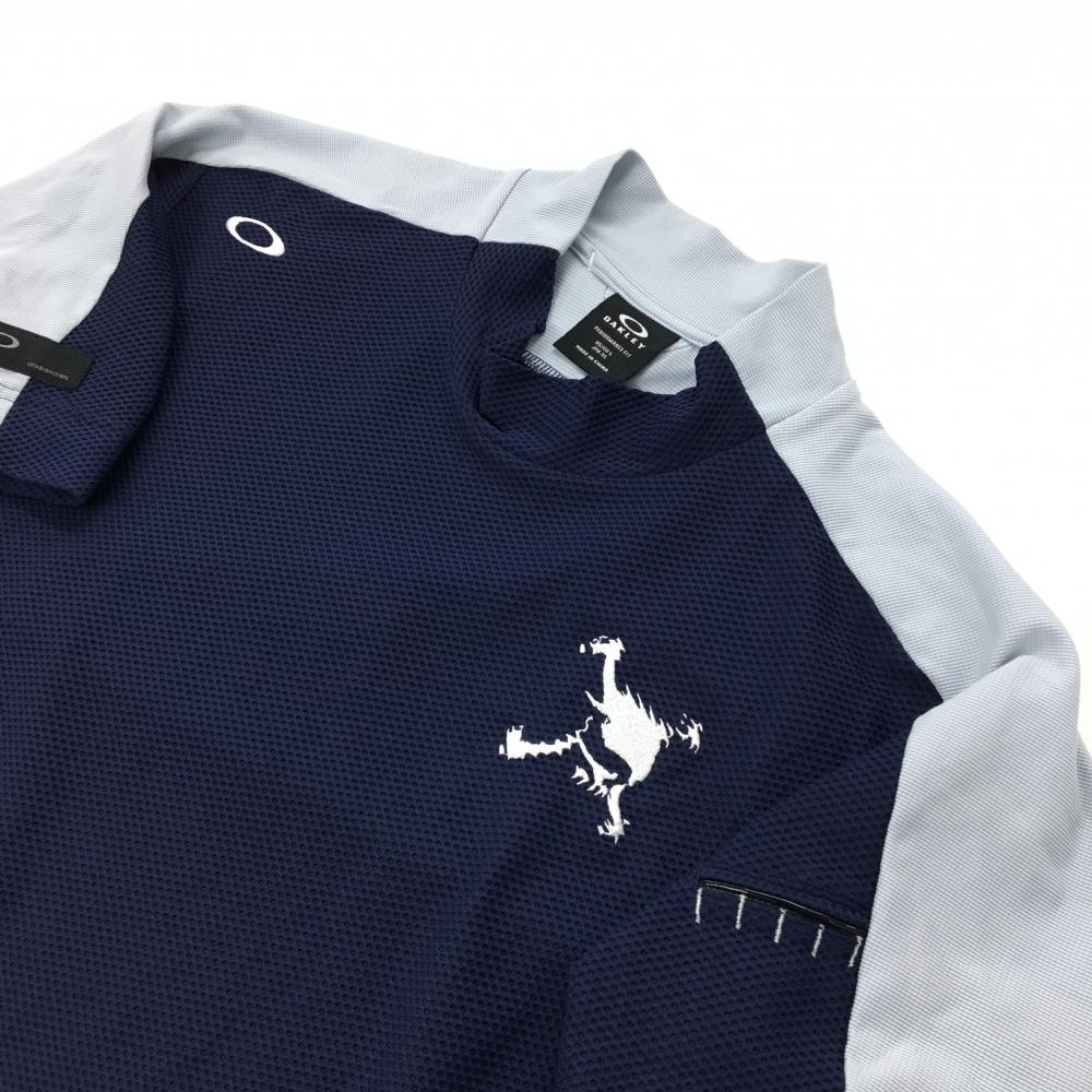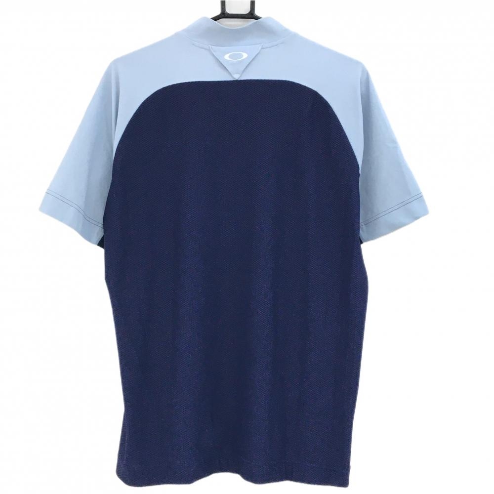 オークリー 半袖ハイネックシャツ ネイビー×ライトブルー 一部メッシュ調 ティー装着可 メンズ XL ゴルフウェア 2024年モデル Oakley