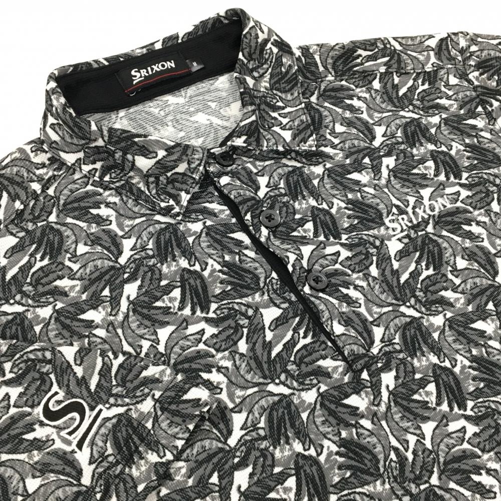 【超美品】スリクソン 半袖ポロシャツ グレー×黒 リーフ柄 メンズ M ゴルフウェア SRIXON