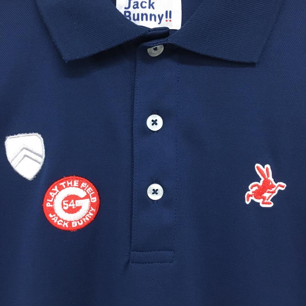 ジャックバニー 半袖ポロシャツ ネイビー ロゴレッド メンズ 4(M) ゴルフウェア Jack Bunny