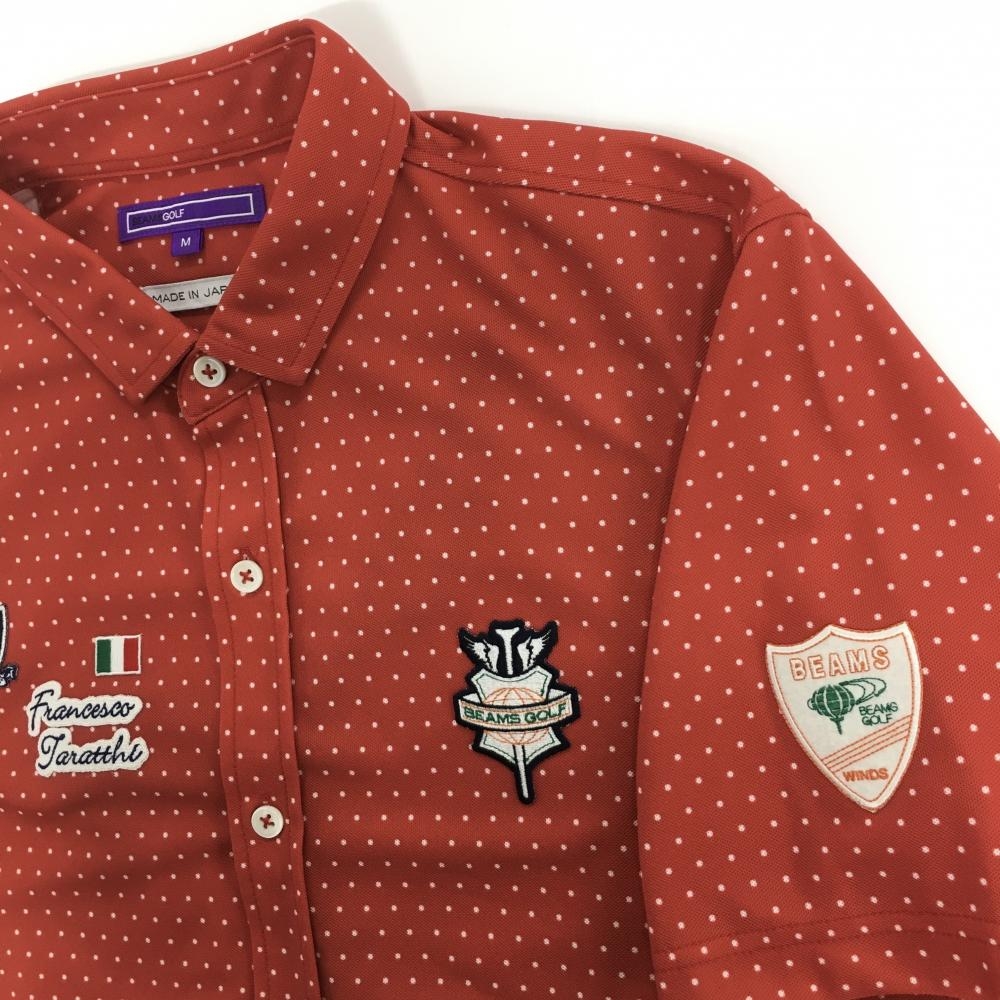 【超美品】ビームスゴルフ 半袖シャツ レッド×白 ドット メンズ M ゴルフウェア BEAMS GOLF