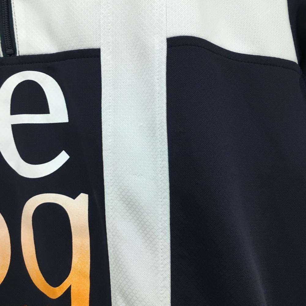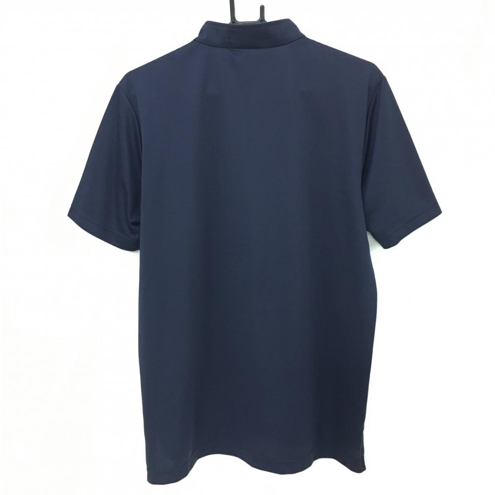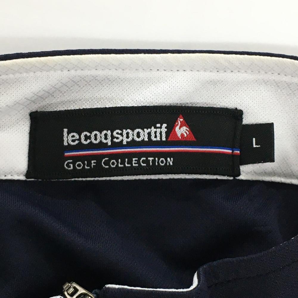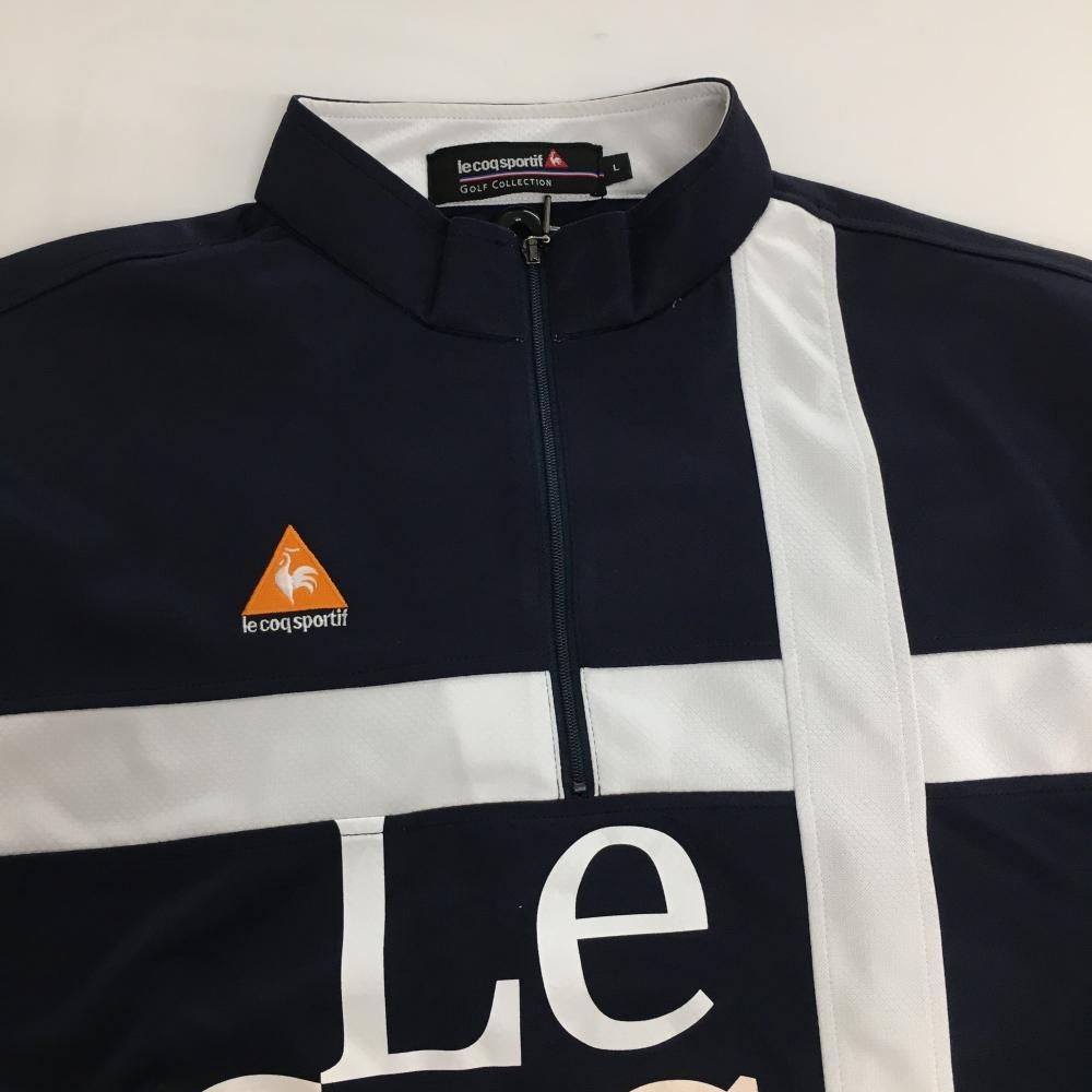 ルコックゴルフ 半袖ハイネックシャツ ンネイビー×白 フロントロゴ ハーフジップ メンズ L ゴルフウェア le coq sportif